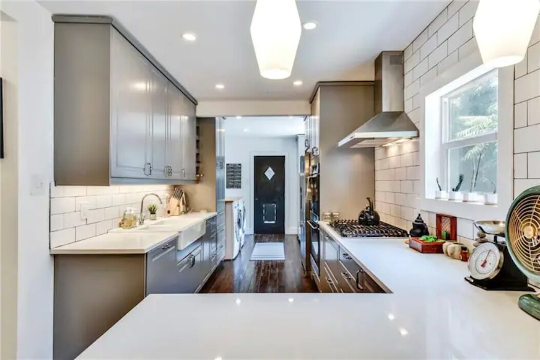 A beautiful updated kitchen with hardwood cabinetry, state-of-the-art appliances, and spacious quartz countertops will satisfy all your needs if you decide to prepare some delicious dishes.