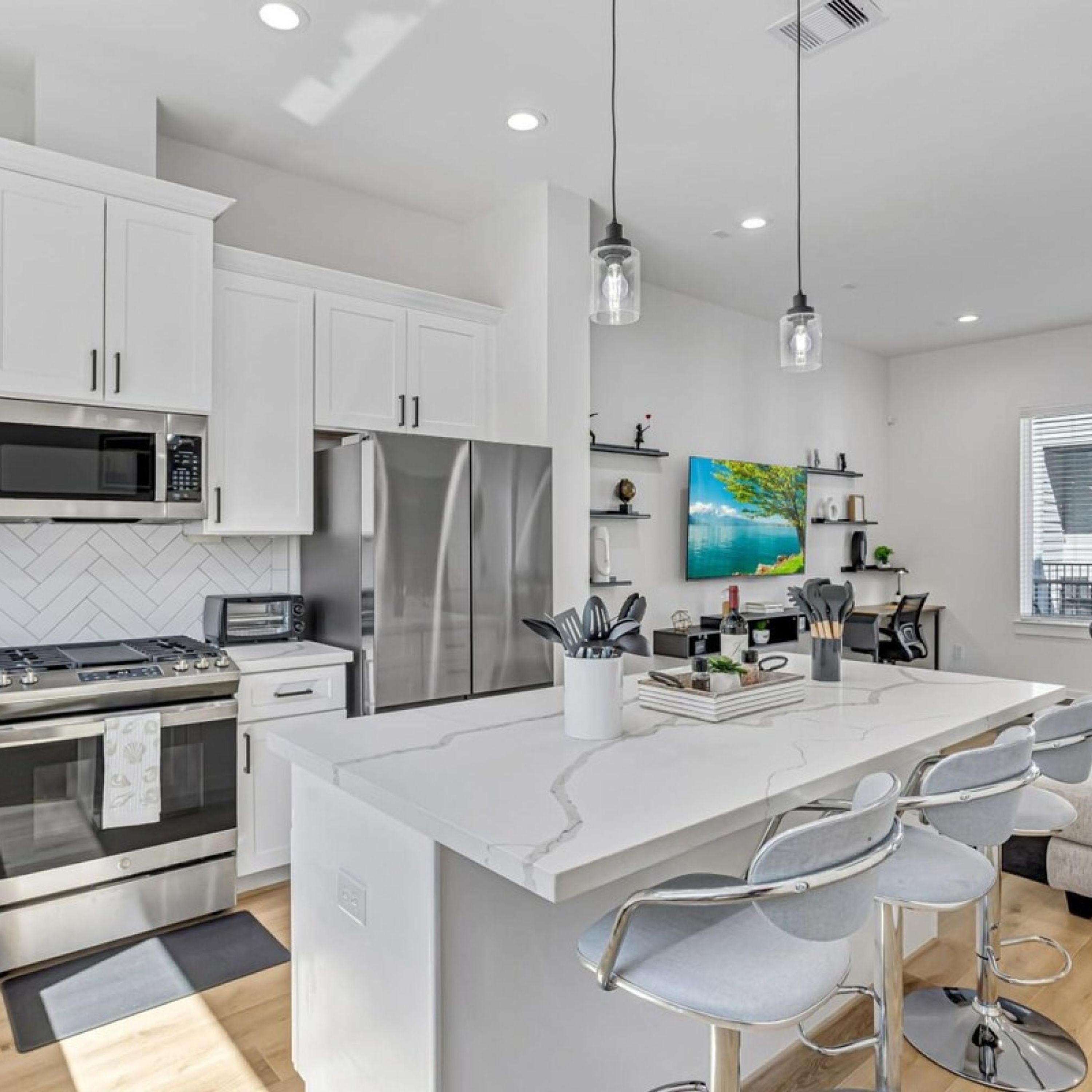 - "The property host was very responsive and accommodating. This is a brand new town home and everything thing was in great condition and very clean. I can’t wait to book it again! " - "Great place great coffee" - "Amazing property. Nice and clean. Very cozy. I will be staying here everytime I visit the HOUSTON area. It was AMAZING" - "What did I like or what was unique about the property? “My family and I stayed here for Thanksgiving, and we absolutely loved the cozy atmosphere! The open-concept kitchen and dining area were perfect for preparing and enjoying our holiday meal together. The property was beautifully decorated, clean, and had a unique charm with its rustic furniture and large windows that let in natural light. The host even left thoughtful holiday touches like festive decorations, which made it extra special. "