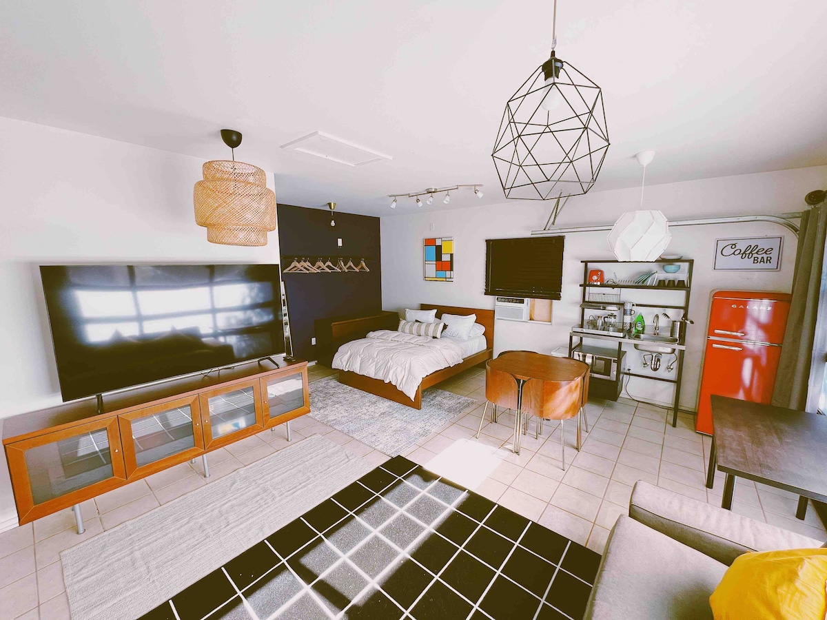 This cozy artist's studio is a home away from home, uniquely situated along Miracle Mile in the heart of Los Angels. Located above a European furniture store, this 350 sq ft micro flat is walking distance to the grocery stores, coffee shops, restaurants, boutiques, and all the bustling aspects of urban living. Overlooking the famous LA Brea Design District and walkable to American Rag, Sweetgreen, Undefeated, etc.