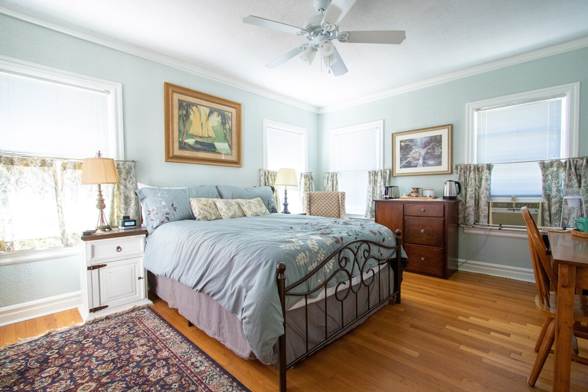 This is a large, charming Tudor-style studio apartment above my personal residence. The previous owner went through painstaking measures to preserve the authenticity of this 20's era home, from the windows to the hardwood floors. You will have private entrance accessed from the front porch and a convenient french door access to your own private balcony, overlooking the beautiful M-Streets neighborhood. The shower was recently remodeled and the home includes all of the comforts you deserve!