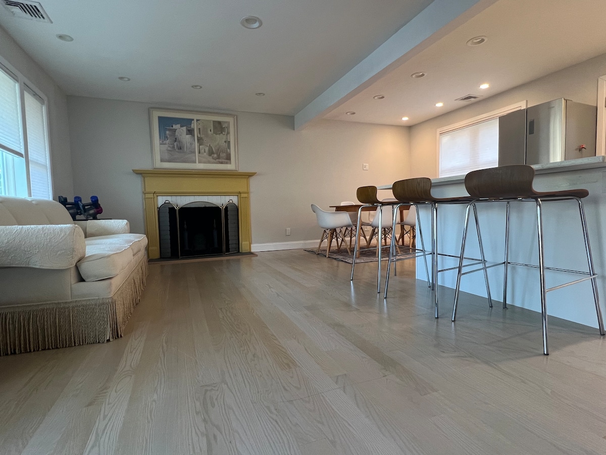 Located on a quiet street, our fully renovated duplex apartment in Greenwich boasts hardwood floors, a washer-dryer, heating, air conditioning, and a fabulous modern kitchen. The living room has a large screen 4k TV and an electric fireplace for you to enjoy. The private patio just off the kitchen allows you to relax outside whenever you like.