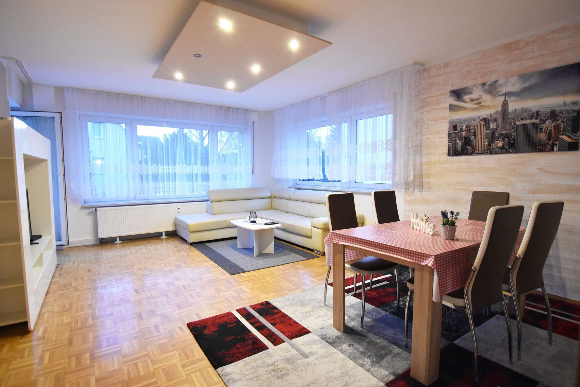 A recently renovated apartment, Modern und kinderfreundlich, 3km zu Messe, Airport Köln-Bonn offers accommodations in Cologne. This apartment features free private parking, room service, and free Wifi. KölnTriangle is 6.3 miles from the apartment and Cologne Chocolate Museum is 7.1 miles away. Featuring a terrace and city views, the spacious apartment includes 2 bedrooms, a living room, satellite flat-screen TV, an equipped kitchen, and 1 bathroom with a shower. Towels and bed linen are offered in the apartment. This apartment is allergy-free and non-smoking. A car rental service is available at the apartment. LANXESS Arena is 6 miles from Modern und kinderfreundlich, 3km zu Messe, Airport Köln-Bonn, while Messe/Deutz Station is 6.2 miles from the property. Cologne Bonn Airport is 1.9 miles away.
