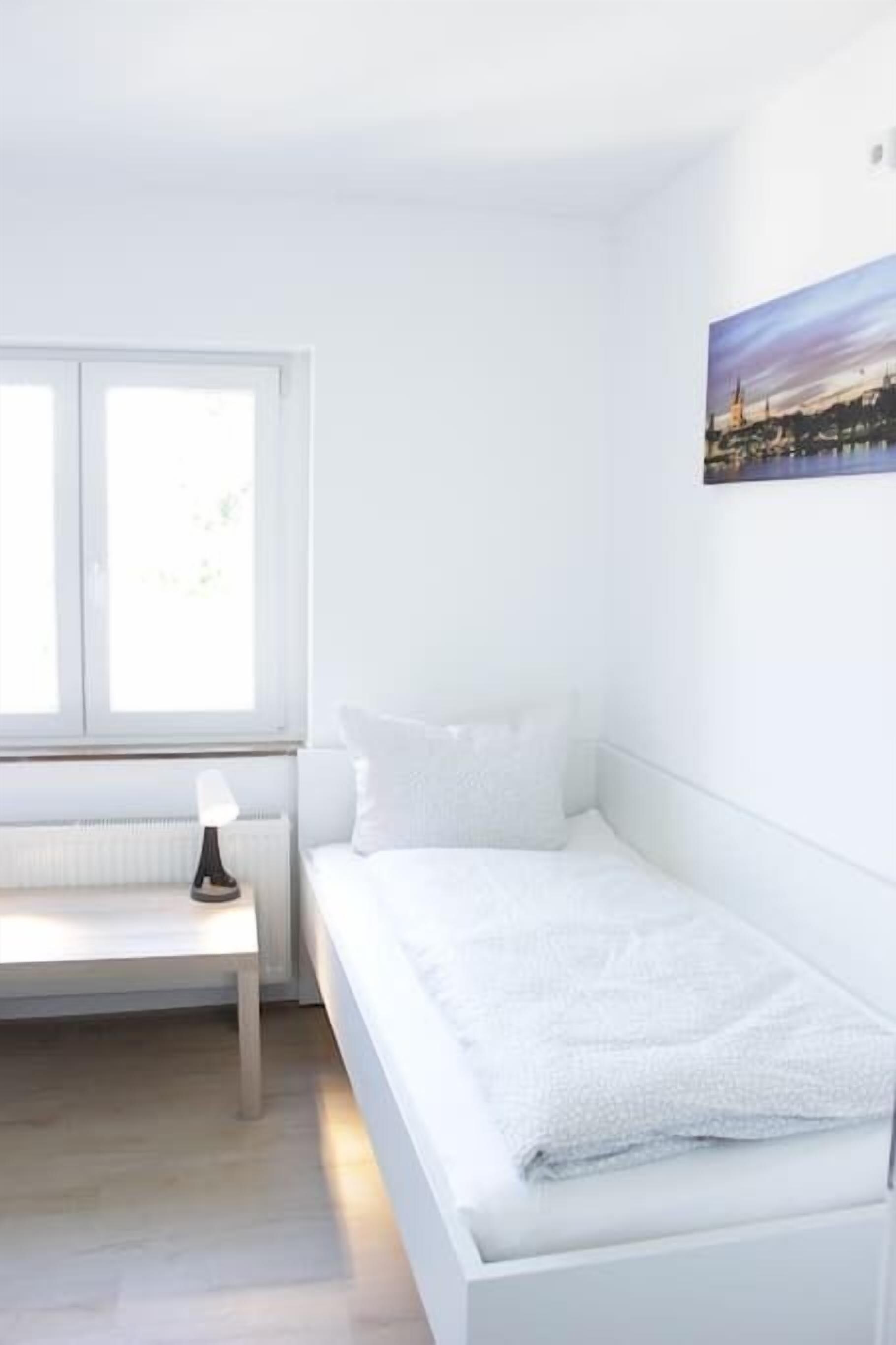 This top apartment with kitchen and bathroom, walk-in closet and balcony is only a few minutes away by bus and train from the trade fair and the Rhine. The apartment in a quiet location is on the ninth floor of a large apartment house and can accommodate 1-2 people. It is fully equipped and is 35 square meters. Free parking is available in the residential street. The apartment is