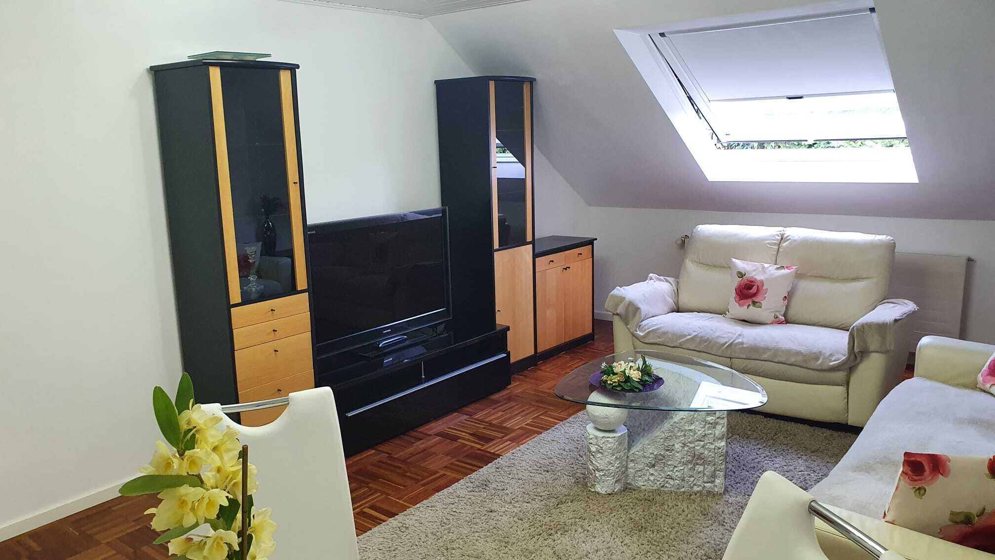 The new guest apartment with garden view is located in the Königsforst / Wahnerheide recreation area, invites short-term vacationers or trade fair guests to relax, and business people will also find the necessary peace and quiet here.