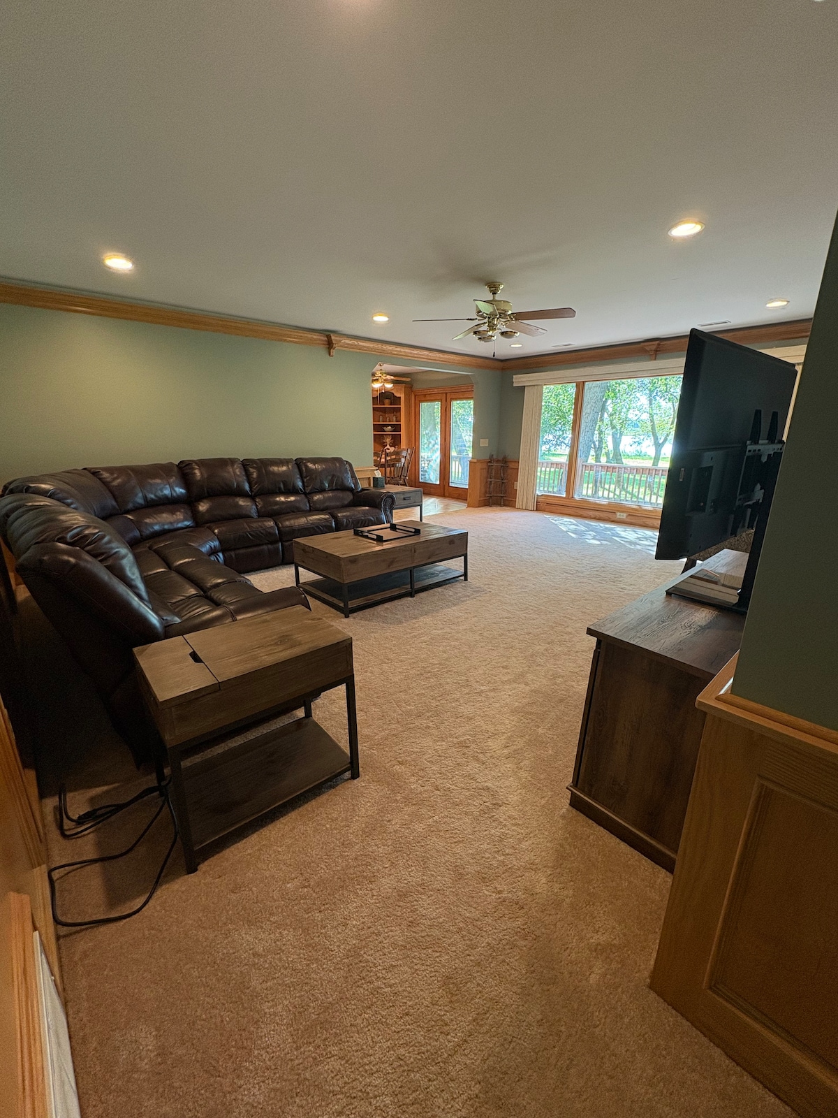 -Large living room with room for an air-mattress (not supplied), or extra spots to sleep on large leather couch if requested, and extra guest fee is paid.