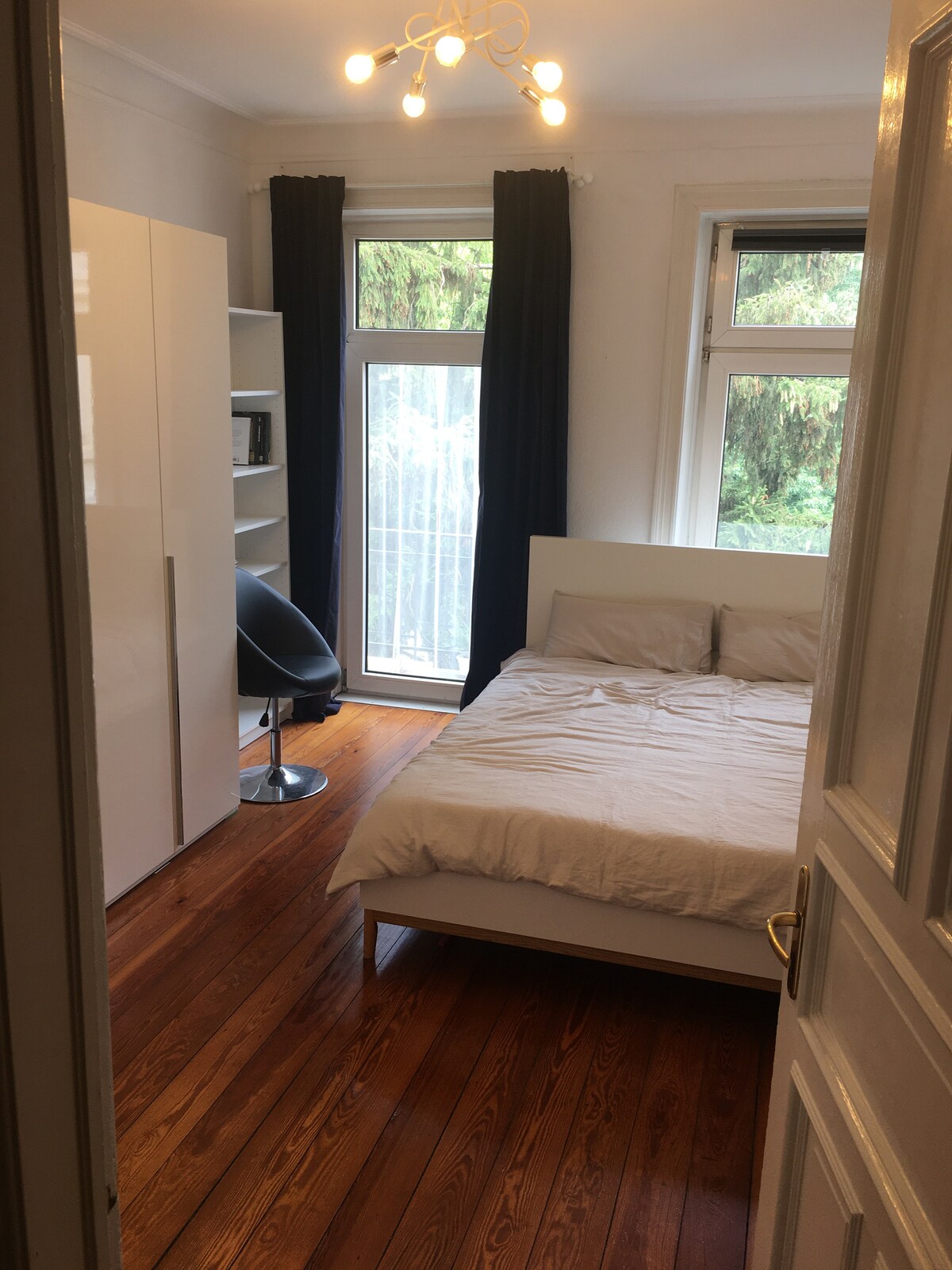 This is a beautifully cut 2 room apartment (for non-smokers), completely redesigned, on the garden floor of a typical Hamburg Wilhelminian style villa. You enjoy living in the countryside and are still quickly in the city or in the nearby AEZ. The apartment is comfortably furnished, with wooden floors in the entire living area and underfloor heating in the bathroom. In the kitchen you will find everything for a perfect time including a Nespresso machine. A small terrace is in front of your living area. The living area opens from the kitchenette to the dining area. There is a sofa bed for 2 more people. In the bedroom there is a box spring bed and a large wardrobe, as well as a desk. The apartment has a WiFi guest access. A 50 "TV and a Blueray player and another flat screen in the bedroom.