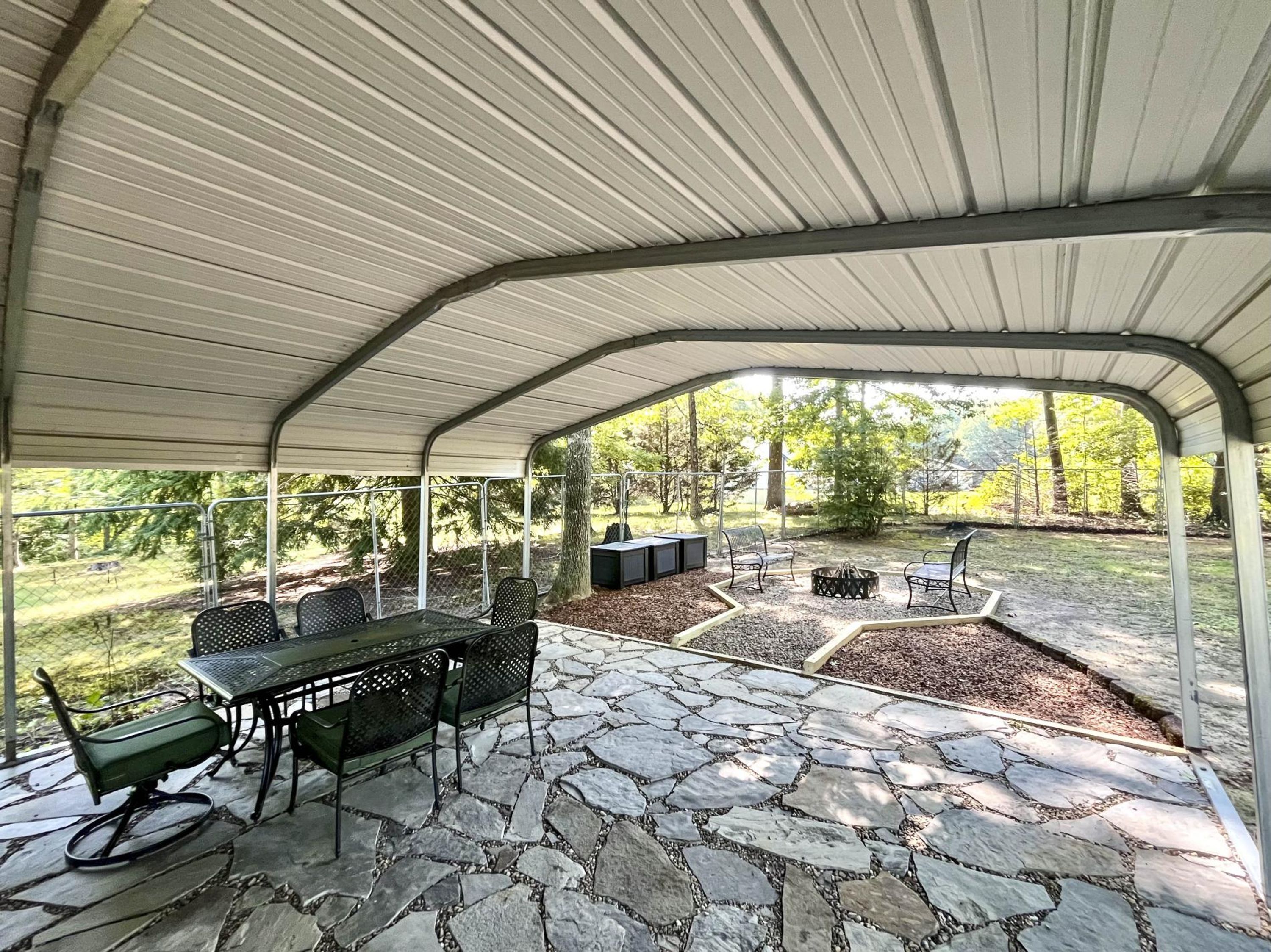 The Pavillion is a common area for guests and also the playground for kids and the up front common area with fire pit is an area for all guest and of course feel free to walk the hiking trails down to the waterfalls or gravel roads just please be respectful of the other guests and watch out for creatures you are in the woods!!!