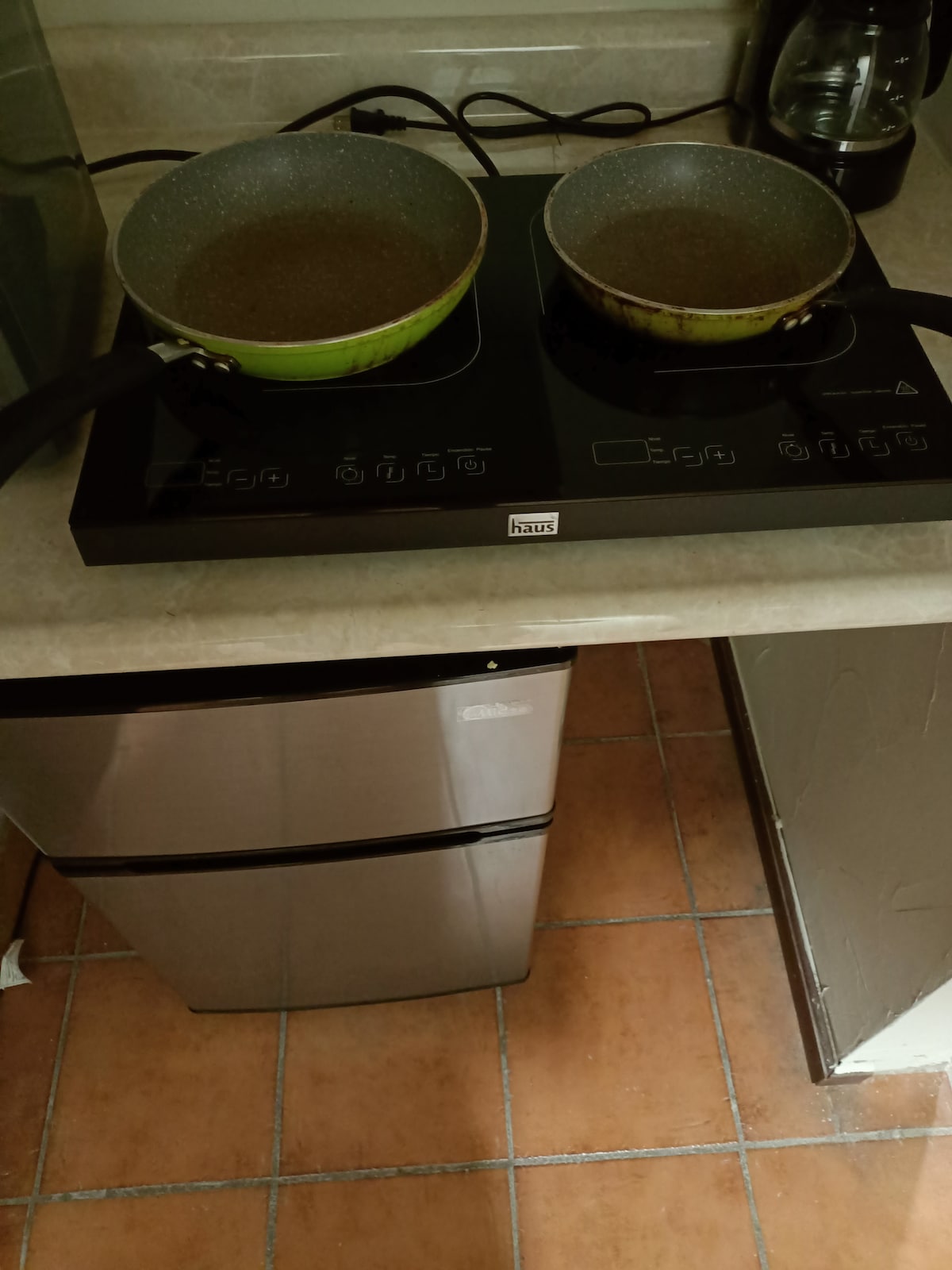 Kitchenette that includes: microwave oven, sink, double induction grill, blender, Dolce Gusto coffee maker with refillable capsules (we include coffee to refill them), water jug with automatic dispenser, minibar and dining bar for 4 people.