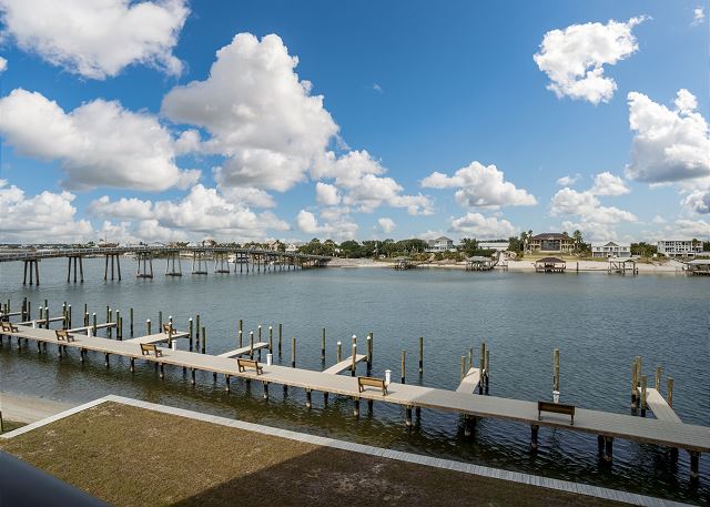 Relax with the whole family at this peaceful, family friendly, 3rd floor condo close to FloraBama and the Perdido Pass inlet. Bring your boat for some world-class fishing and park at the dock, enjoy the back patio views of the bay and boat traffic with coffee/wine, and the famous exclusive Ono Island. Short walk to the beach, 0.6 miles to FloraBama for some nightlife.
