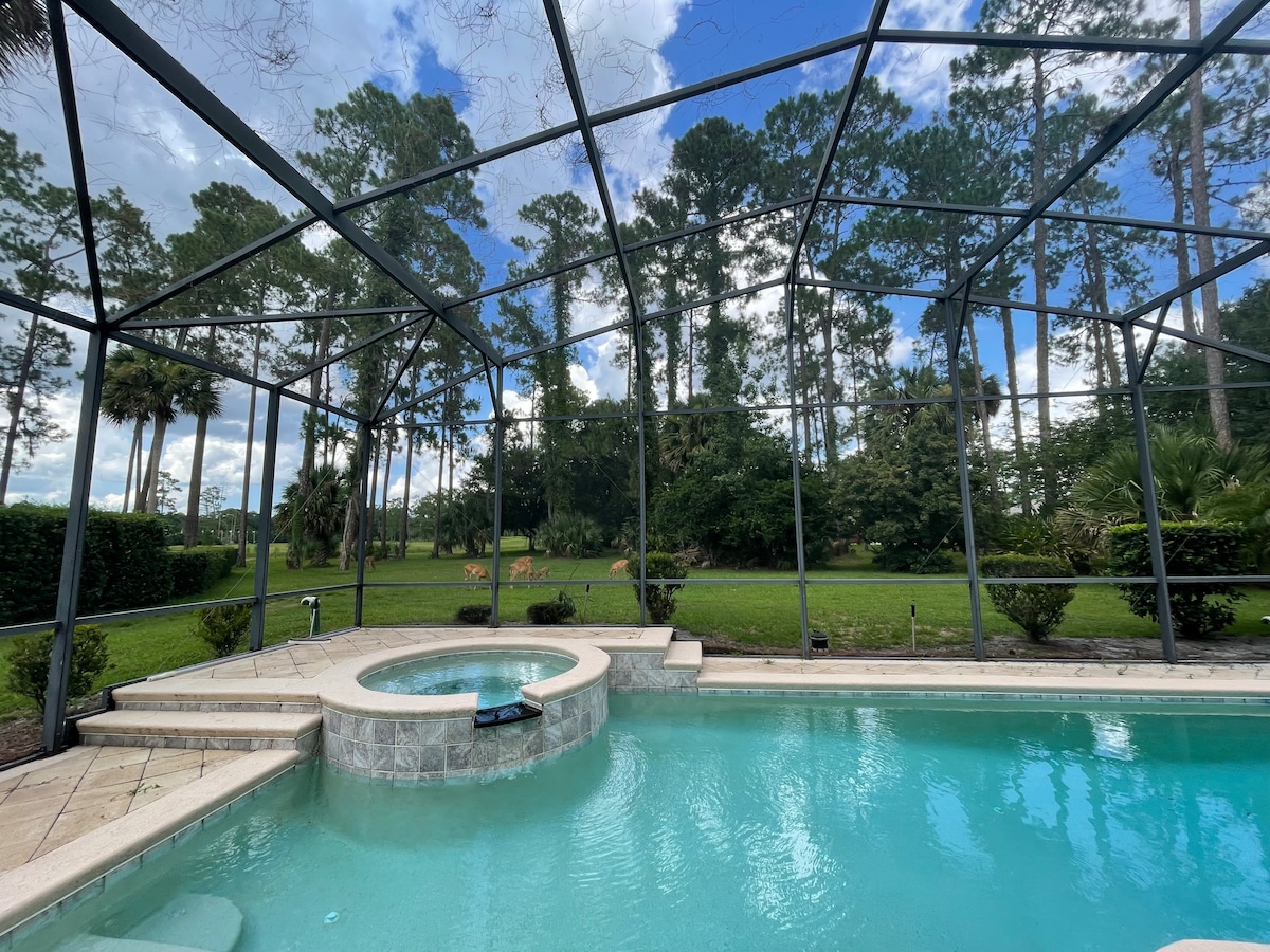 The gourmet kitchen with stainless steel appliances provides everything you need to feel at home—savor a cup of morning coffee with serene views of the pool through the French windows, and enjoy breakfast at the kitchen island that seats 5. The expansive and bright game room is the hub of the home, with access to the pool and lanai. Grill up some hamburgers and hot dogs, turn on your summer music playlist, kick back in the hammock and soak up the Florida sun. At night, turn on the twinkle lights and unwind in the heated spa. Retreat to the primary suite for a good night’s rest on the comfy king bed, get a little work done at the computer desk, and easily stow away your belongings in the large walk in closet.