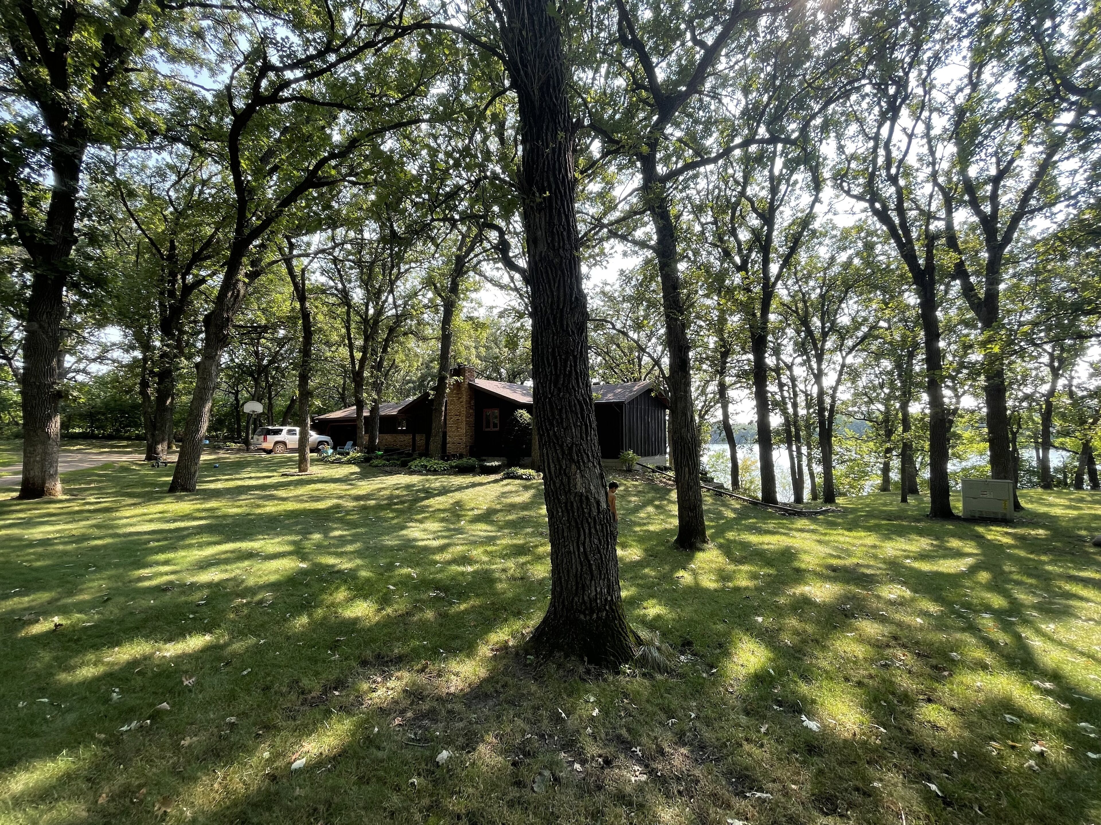 Spacious lake home on over 2 acres. Enjoy the peacefulness of this hidden gem surrounded by big oak trees. A long driveway brings you to this house nestled in the woods. The home is partially remodeled. The 3 bedrooms are all upstairs, along with 1.5 baths. Internet is fast and suitable for those who work from home. There are 2 smart tv’s upstairs and 1 downstairs. Lake views from most rooms upstairs. Downstairs has a large open area with a treadmill and desk.