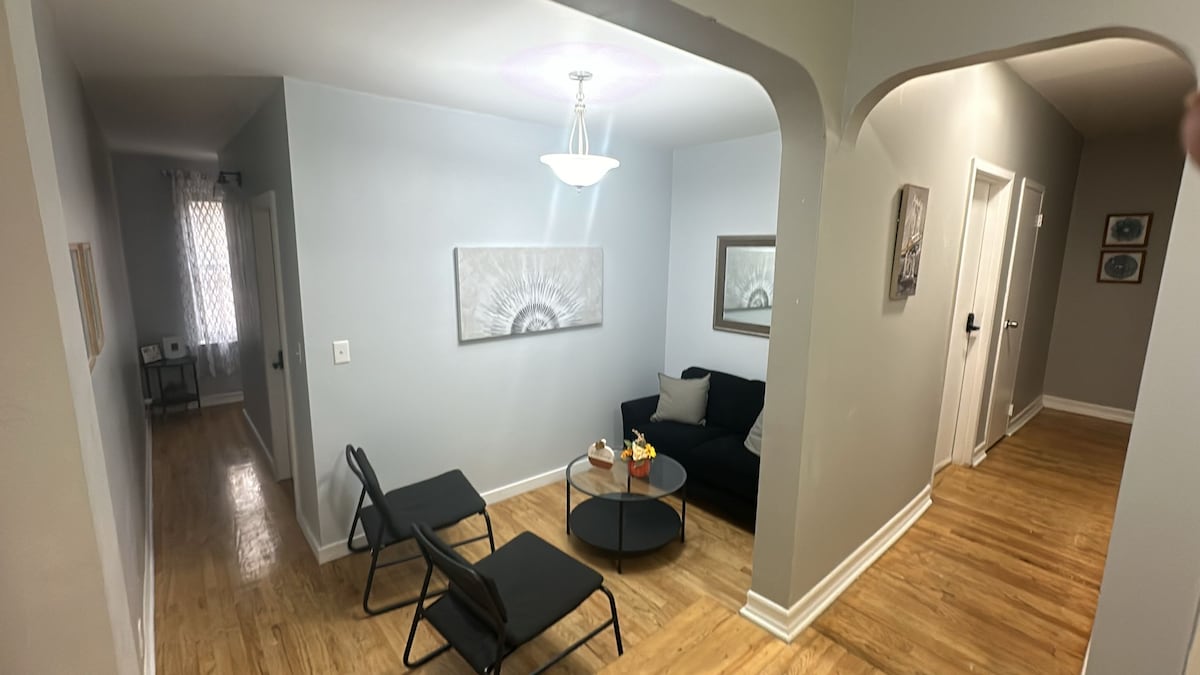 Welcome to our cozy one-bedroom apartment just 25 minutes from Times Square. Enjoy hotel-quality comfort with the privacy of your own home. Professionally cleaned, the space includes a pull-out couch, fully stocked bathroom, Smart TV with Netflix, and a kitchen equipped with essentials like oil, coffee, and tea. Our top priority is providing exceptional hospitality. With local cafés, restaurants and parks nearby, book now for a hotel-like experience at a fraction of the price!