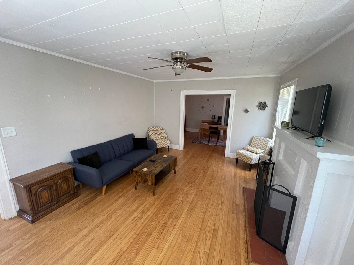 Newly renovated duplex unit with driveway entrance and covered parking in back. Good sized unfenced backyard, central air and heat, tankless water heater, and fast wifi.