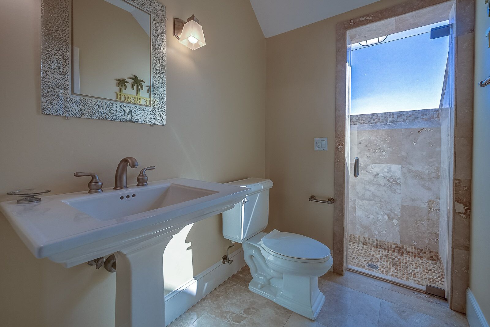 Take the stairs to the second level where you will find the bedrooms and bathrooms. The master bedroom features a king bed, flat-screen TV, balcony, and en-suite bathroom. The guest room has ample space for all your guests. There are 2 twin beds, as well as a bunk bed and trundle for sleeping for 5 totals. There is also a flat-screen TV, balcony and en-suite bathroom.