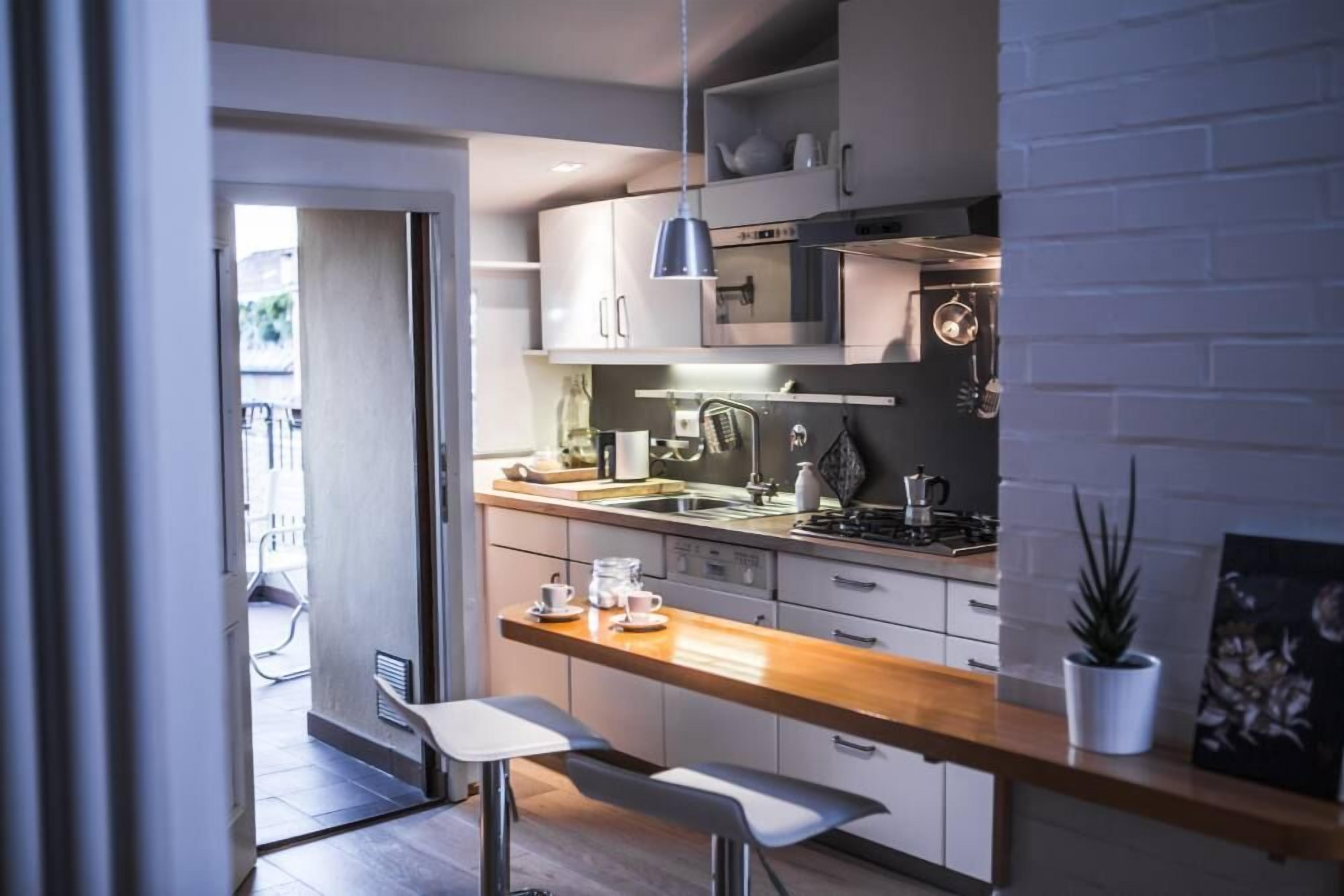 - Kitchenette equipped with gas stove, dishwasher, refrigerator, freezer, electric kettle, moka, traditional oven and microwave;