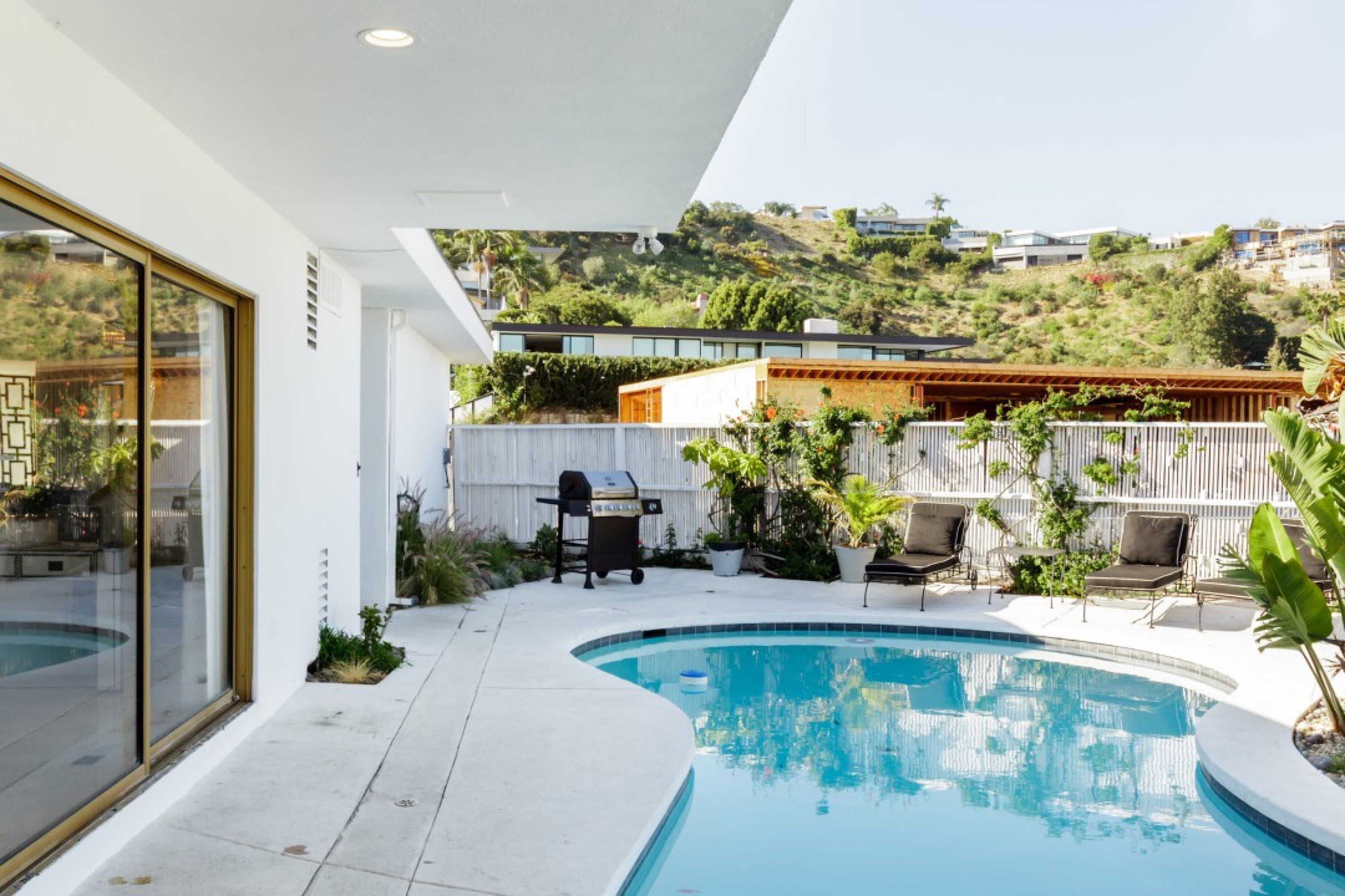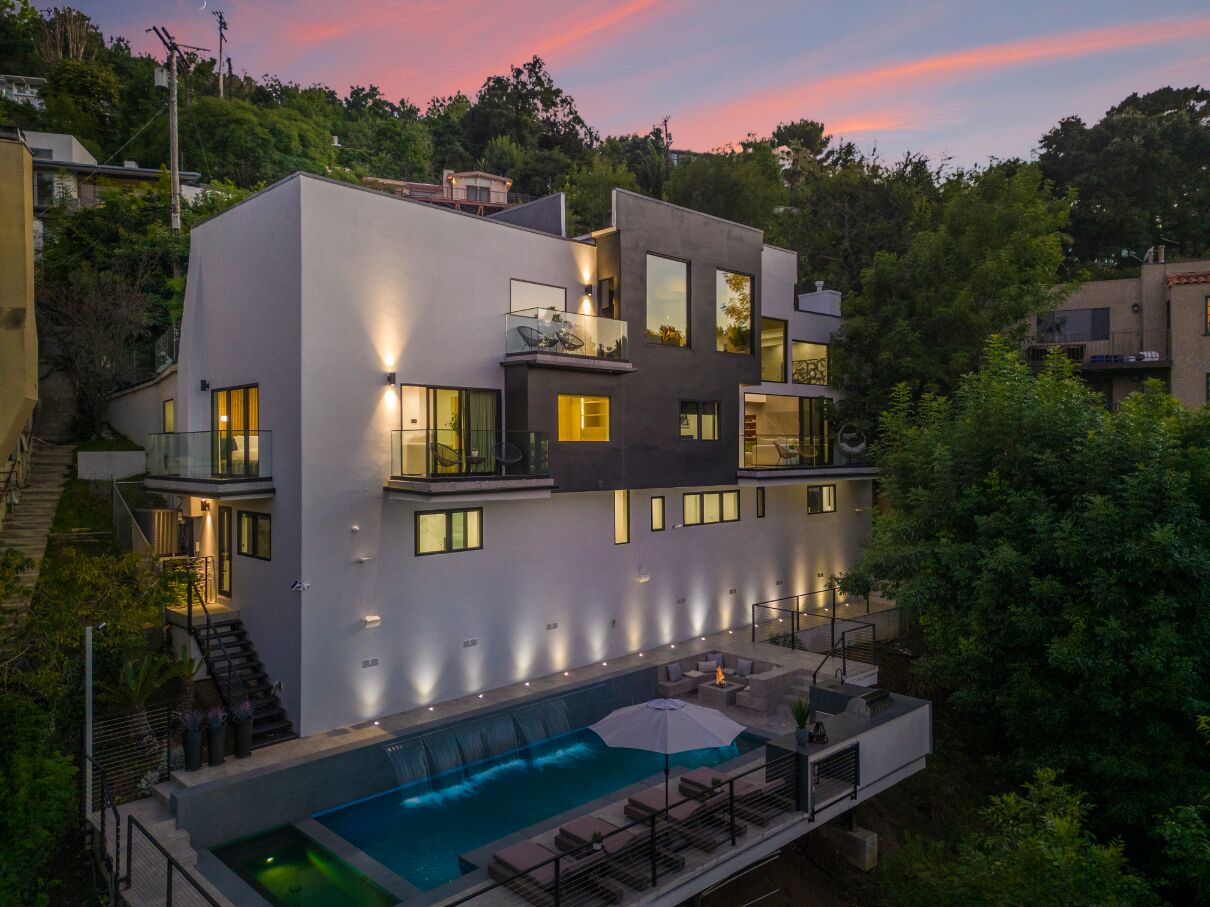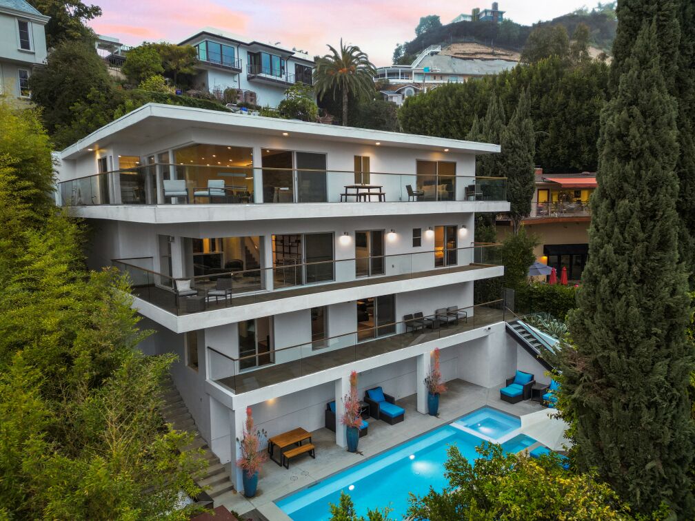 Celebrity-grade home in a legendary neighborhood. Million dollar views on LA from a luxury backyard with a big pool And luxurious backyard with a great view