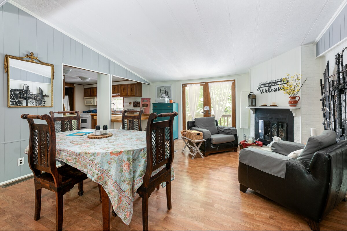 If you're looking for a hip and chill change of scenery where you can entertain, play together, or just relax by the water, this colorful riverfront cabin should fit the bill! Outside, you'll find a shared riverside deck with a table and chairs, a firepit, and a variety of watersports accessories, including adult and junior kayaks, two beach bikes, inflatable tubes, and skimboards. This adorable, single-level home includes a well-equipped, full kitchen for whipping up your favorite recipes or reheating last night's leftovers, a dining area with a stereo and turntable for spinning your favorite records, a sunlit living area with a sectional, Roku-equipped TV, gas fireplace, and a large selection of books and games, and a furnished, bonus room in the garage with a second refrigerator, microwave, and TV.