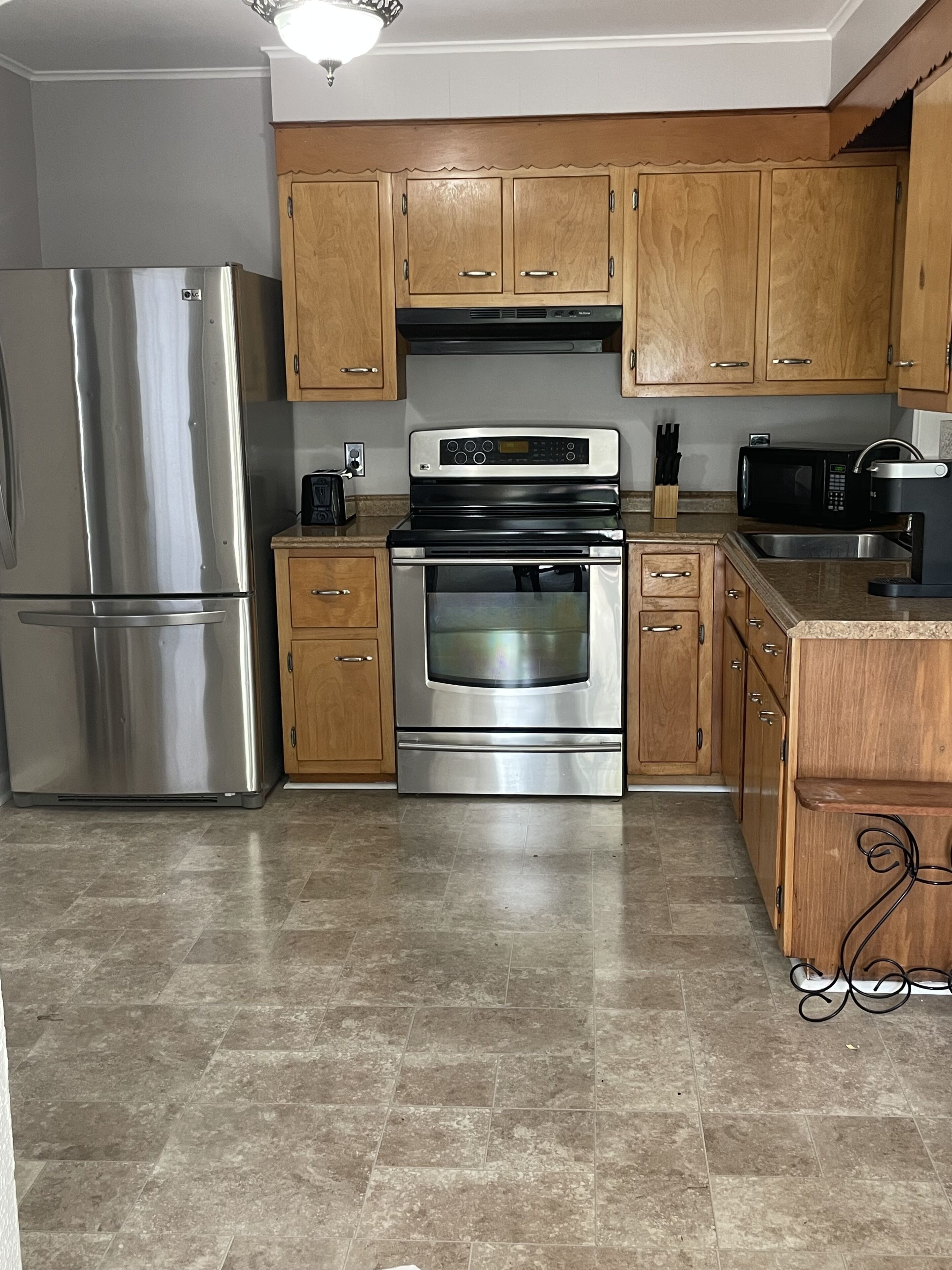 Our newly renovated home is located within walking distance from the lake, and offers several comfortable rooms plus a private patio for your leisure. With three bedrooms, a fully stocked kitchen, and private outdoor patio, our home can accommodate up to 5 guests. The primary bedroom features a queen bed, while the second bedroom has a twin bed and desk. The third bedroom includes a full sofa bed. We provide linens and towels, and deep cleaning between guests.
