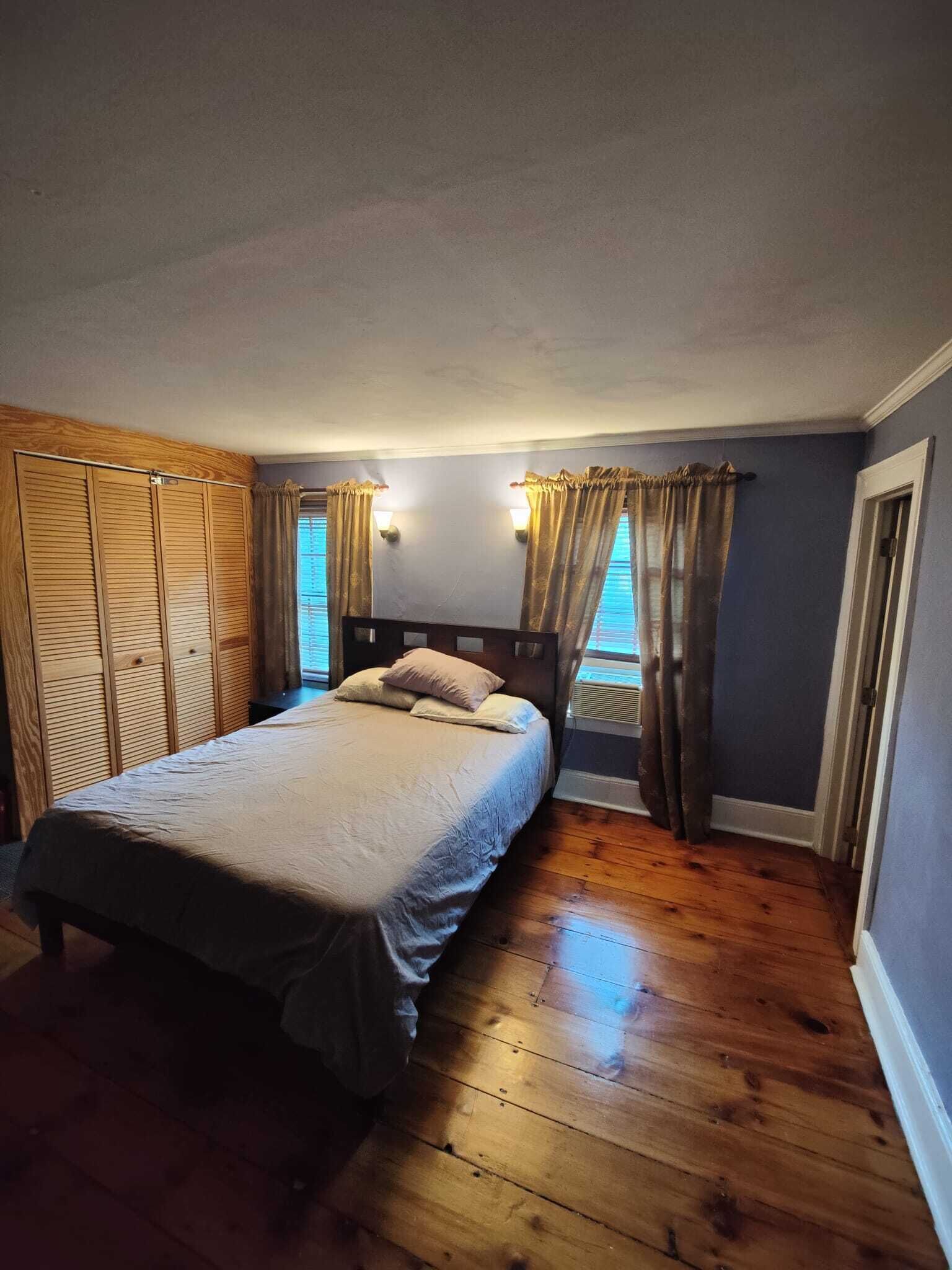 Four bedrooms and two full baths on the 2nd floor. One bedroom has en suite bath. The other bedrooms share a bath. All four bedrooms have new queen-sized mattresses and new linens. The fourth bedroom also has a daybed that makes up into a twin bed. You must use rear stairs or walk thru one bedroom to get to this 4th bedroom.