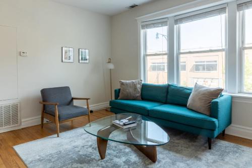 Our 2-bedroom/1 bathroom apartment unit is perfect for getaway to Chicago. Stretch out on a plush sectional sofa in the living room of this airy modern apartment. We're located in trendy Logan Square.Designated parking spot is NOT available, but there is plenty of street parking available.