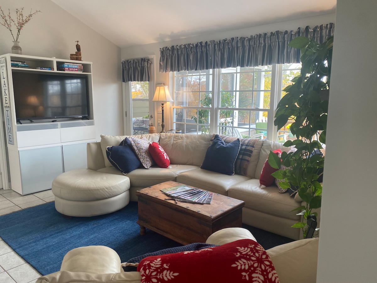 Each room of the house has been remodeled. The living room being the only exception. We kept much of the original detail since it brings so much warmth to the room. Enjoy the living room with your guests while watching TV or catching up on the activities of the day. Three of the four bedrooms have a lake view. Every bedroom has a memory foam mattress for a perfect nights rest. Linens, pillows, and extra blankets are provided for every room. Blackout curtains prevent the morning sun from creeping in until you are ready to start your day. The bathrooms have everything you may need to get yourself ready. Towels, washcloths, and hand towels are all provided in each bathroom. Beach/lake towels are also provided for guests.