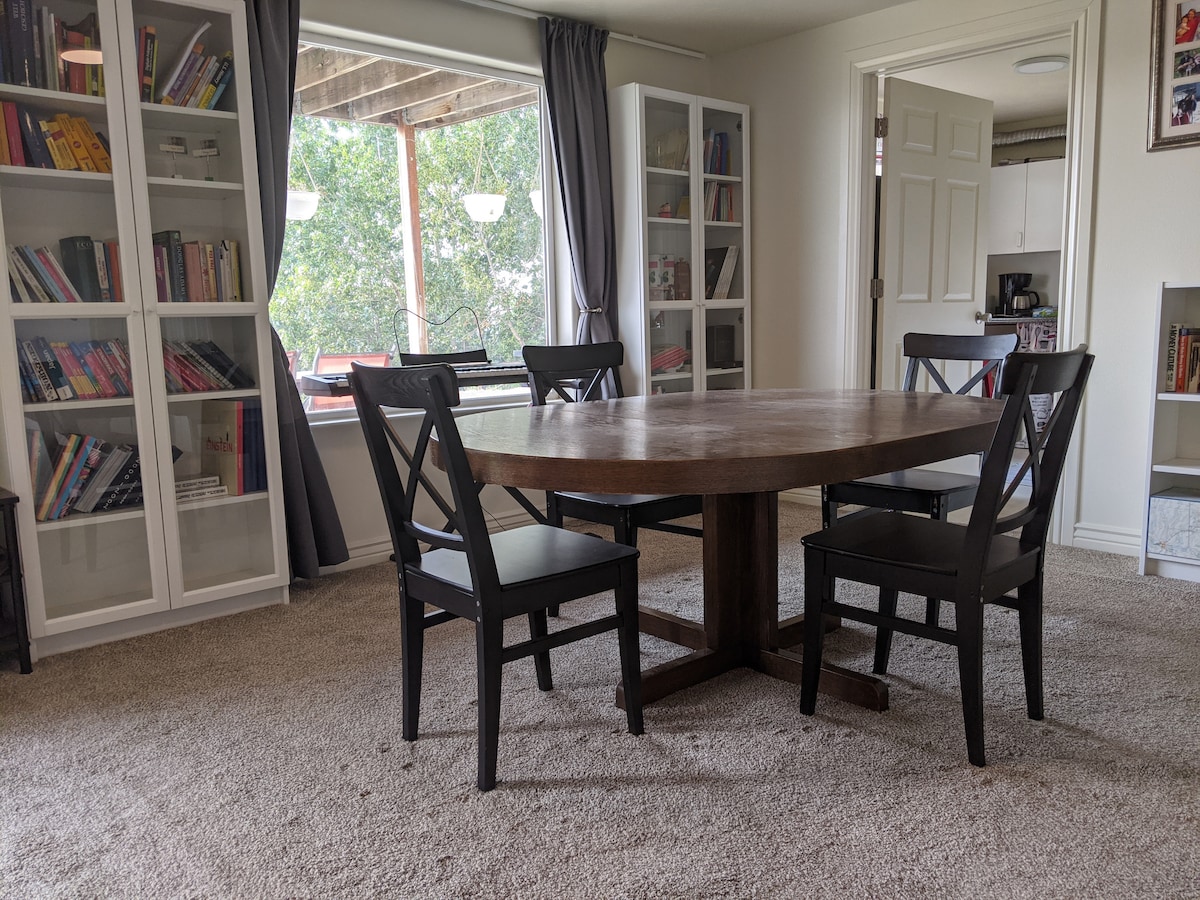 You have access to a private bedroom with queen bed. The private bathroom is just off the hallway outside the room. The kitchenette, living room and dining room are considered 'public' spaces (shared with the hosts), but you'll mostly have exclusive access to it without any interruption. There's about 1,500 sq feet in this area.