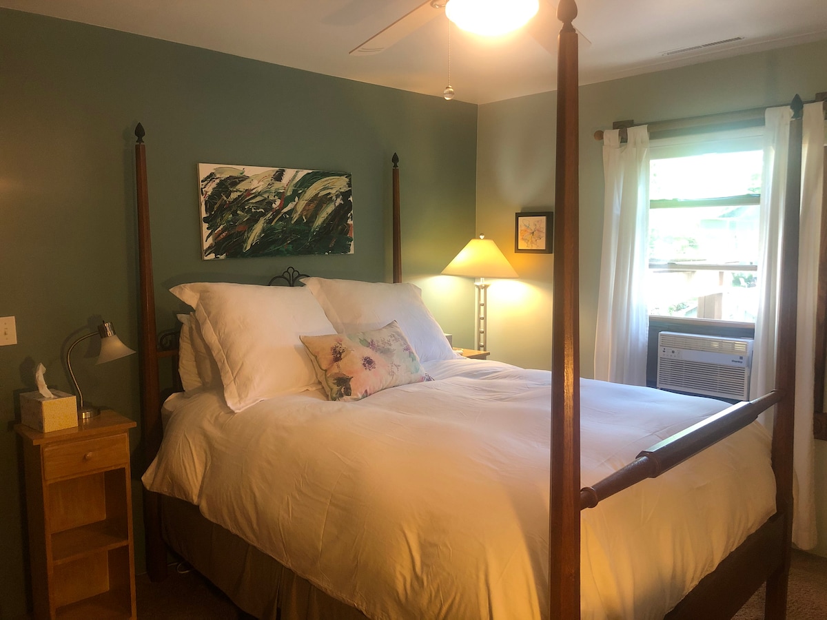 Guests have access to the entire private lower level of the house (2 bedrooms, bathroom, living room, dining room with kitchenette) and the exterior garden and patio area. One king bed, one bunk bed (full & twin) and one air mattress (queen). Sleeps 5. Shared kitchen and laundry access if needed upon request.