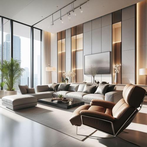 Trendy, architecturally unique, modern two-bedroom apartment, two bathroom apartment with Den/Office within guard-gated lush palm-tree resort setting.