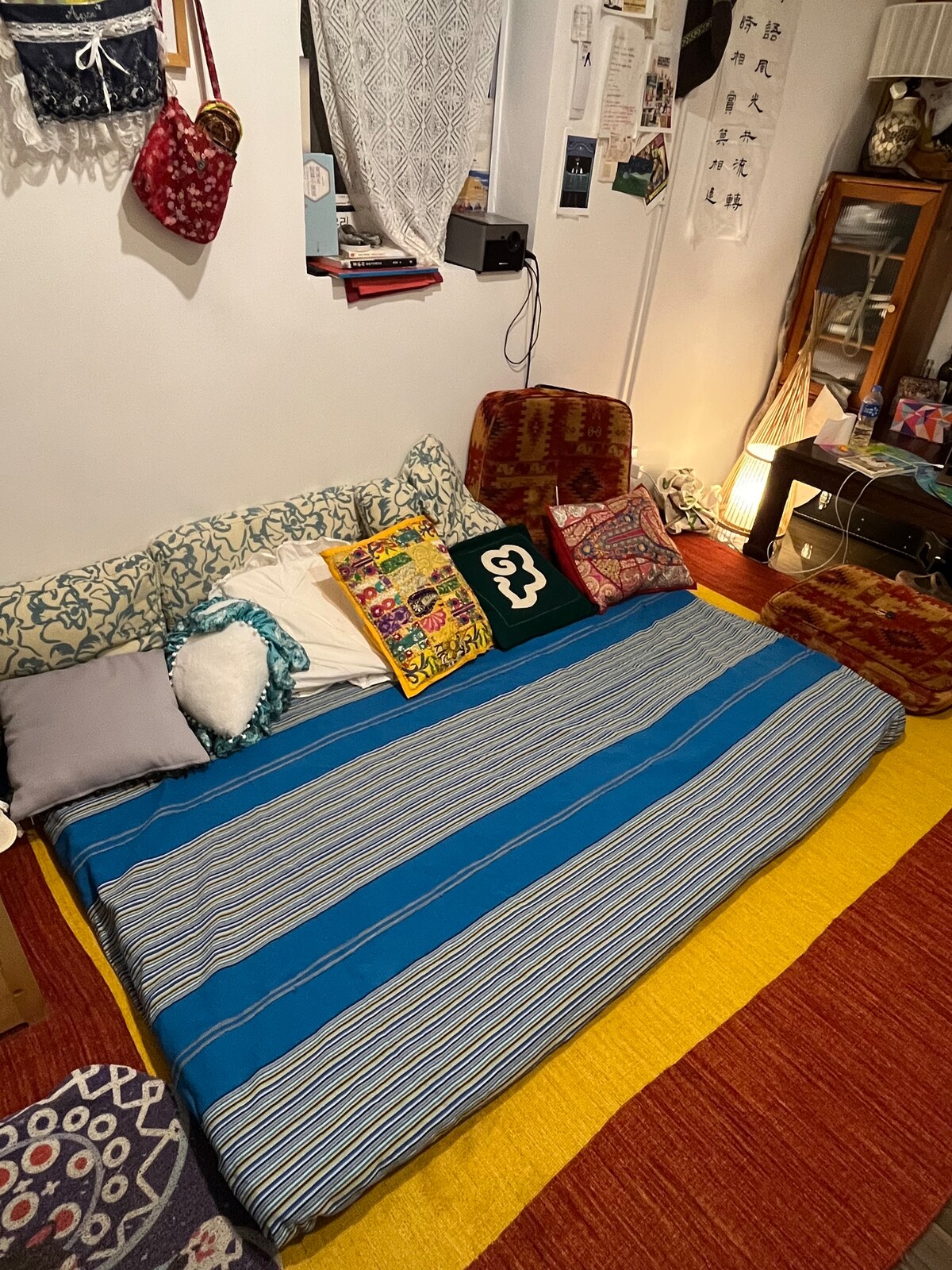 The room has a large single bed that fits two people. There is also a double sofa bed in the living room if you prefer more space. You have your own private office that faces the sunrise, so it's great for writers or people who work from home.