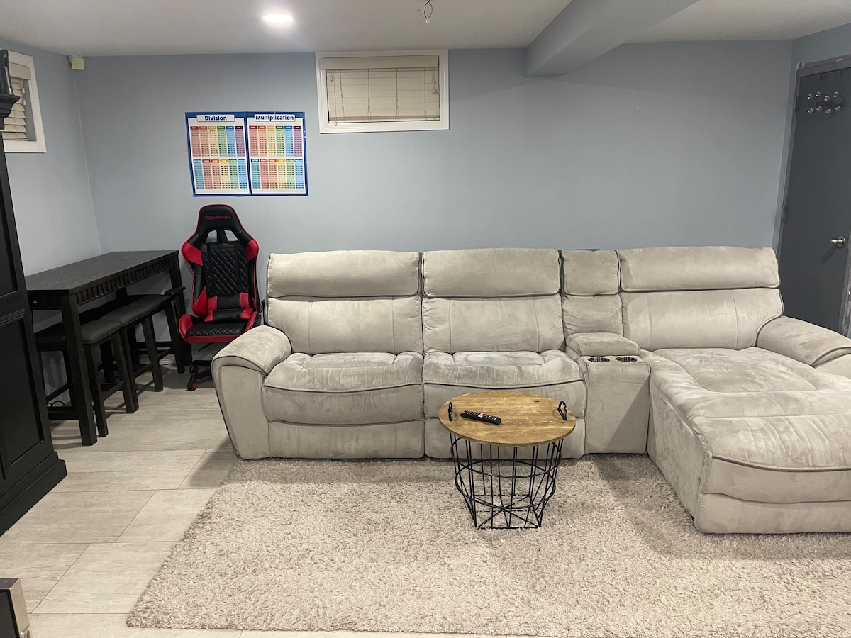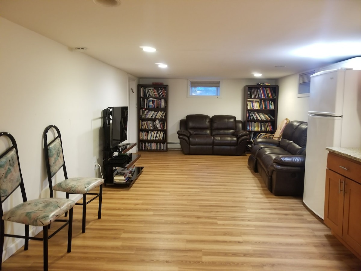 Clean, quiet space, Full/Queen bed, reclining sofa. 70 inch tv equipped with cable. Wifi available. Dining area, full shower in bathroom. Separate entrance. Mini fridge and microwave. Washer and dryer available upon request. No Kitchen.