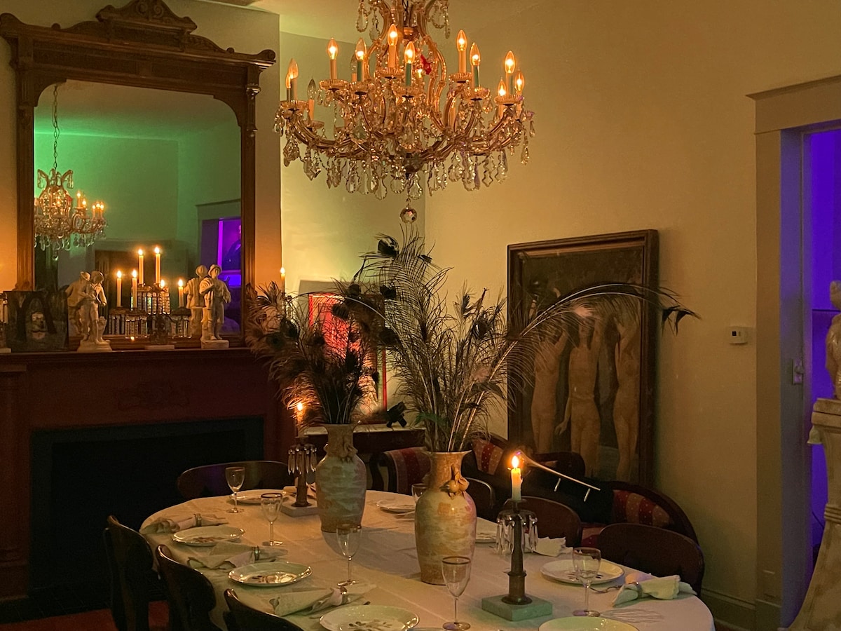 Sitting in the heart of downtown New Iberia, this beautiful, historic Victorian home was built in 1897. It has three bedrooms, and will easily sleep eight people with two queen beds, two twin beds, and a queen sized sleeper sofa. It also has a full kitchen, a separate dining area with seating for six, and music room/parlor. We invite you to enjoy the sounds of New Iberia while enjoying coffee on the front porch or playing the antique piano in the music room.