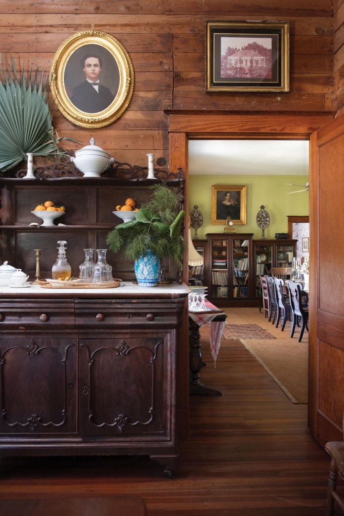 The home’s three generations of decorative arts include items such as Mrs. Ory Patout’s settee, still upholstered in its original fabric, and an heirloom “Remember the Maine” shadowbox that Patout recalls enjoying as a child. Patout continues to incorporate pieces from his own collection of Louisiana antiques as well.