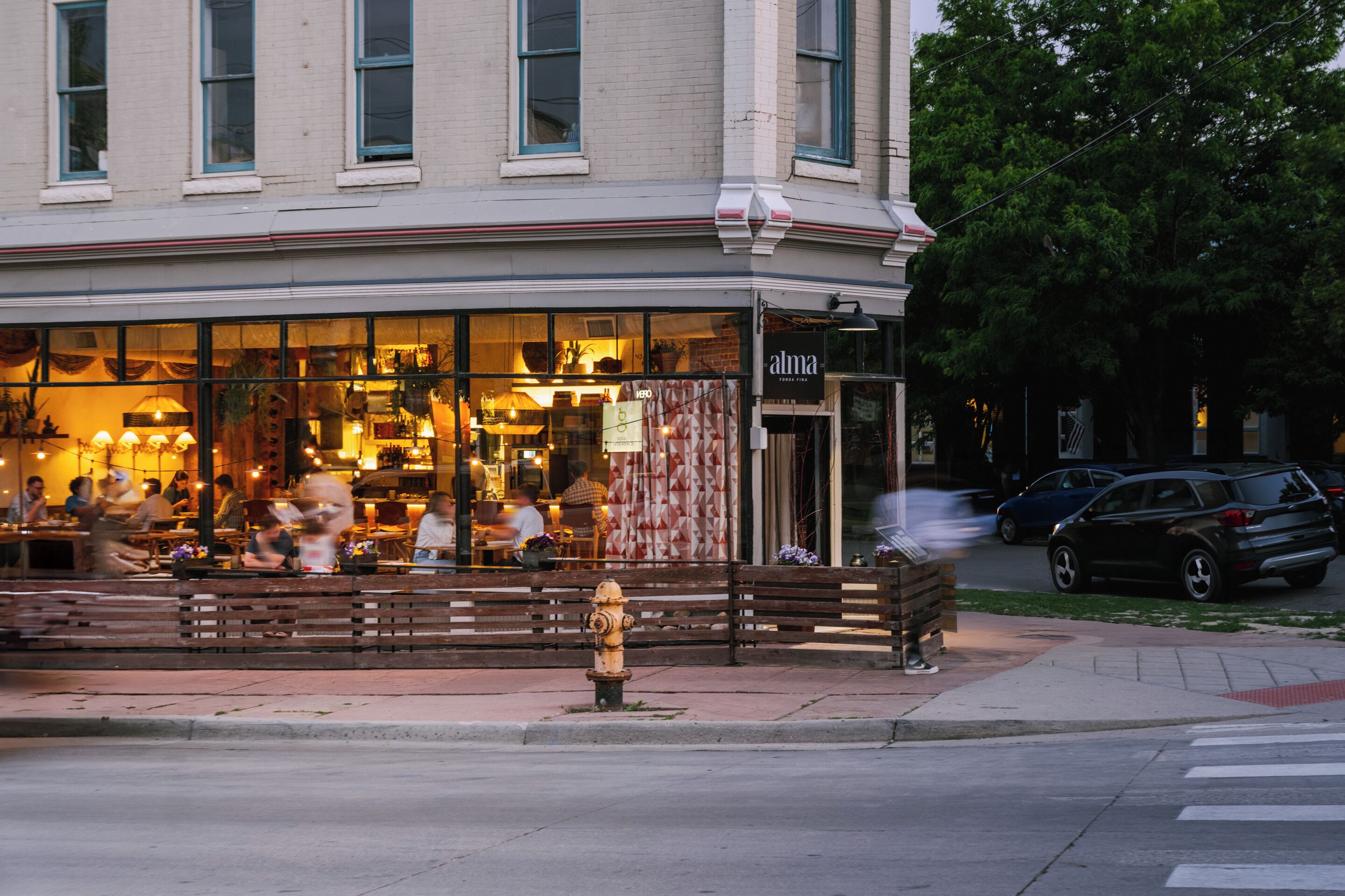 After entering the front door located directly across from Jefferson Park, you walk into the bright and quaint main living area. This area has the cozy living room with windows looking out to the park, a gorgeous modern kitchen just beyond, and a half bath. Beyond this space is a door to the backyard with an outdoor table and barbecue.