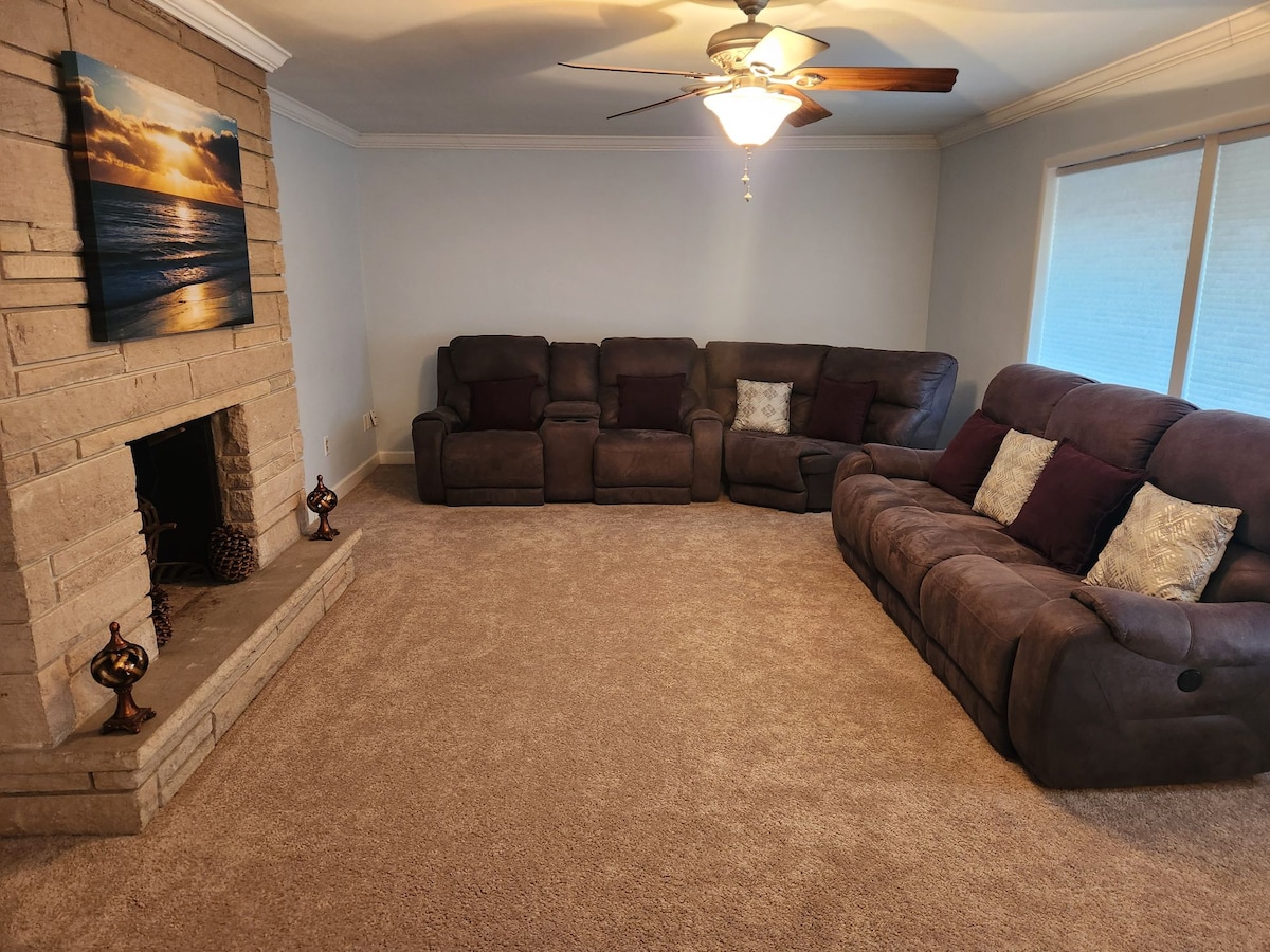 Enjoy a theater experience at our home. With a 77 inch OLED TV, surround sound system, and comfy reclinable seats. Make some popcorn with our popcorn machine and enjoy our full cocktail bar(the bar is cash/honor system)