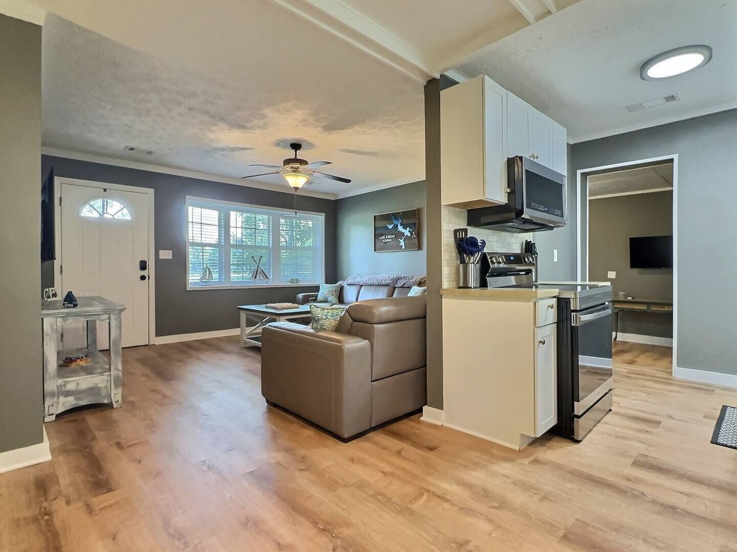 Your whole crew will fall in love with this fabulous, new retreat at the entrance of the Swayback Trail. Whether its relaxation or adventure you seek, this charming cabin is packed with everything you need to get away & enjoy the natural beauty of Lake Jordan & Wetumpka, AL. There's room for the whole crew with 4 spacious bedrooms that comfortably sleeps 10 plus a pack n play for the tiniest travelers. The kids can have their own space with a bunk room featuring 3 beds. The well stocked kitchen with brand new appliances features everything you need to prepare a delicious meal after a day of fun on the trail or in the water! The boat ramp is located approx. a mile and a half down the road & you can access the lake there. Kayak rentals are available at Coosa River Adventures. There is a picnic pavilion steps away from the front door at the entrance of the trail head. We are also a 7-minute walk from the Swayback campground & RV park. We make staying easy, you make memories!