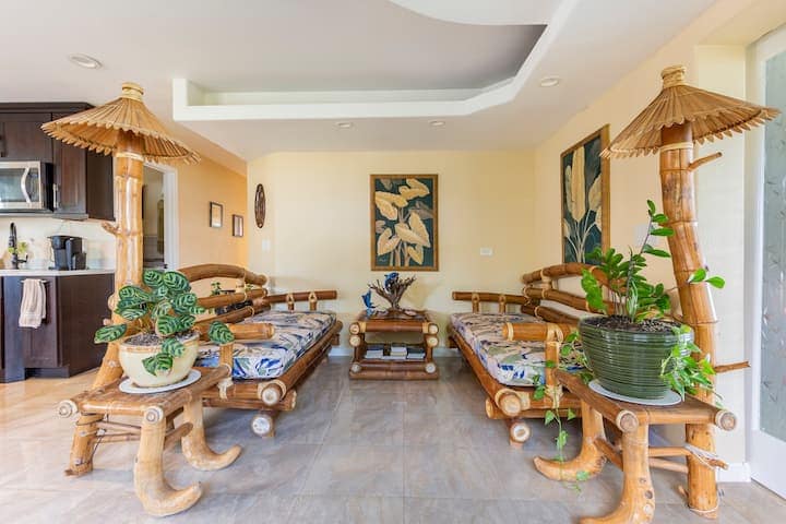 Welcome to our cozy 1-bedroom condo in the heart of Kailua Kona! Steps from pristine beaches and vibrant shops, this modern retreat offers a comfy queen bed, kitchenette, and refreshing AC. Relax on the private lanai with ocean glimpses or stroll to nearby cafes and nightlife. Perfect for couples or solo travelers, it includes Wi-Fi, parking, and beach gear. Experience authentic Hawaiian charm with all the comforts of home—book now for an unforgettable Big Island adventure!