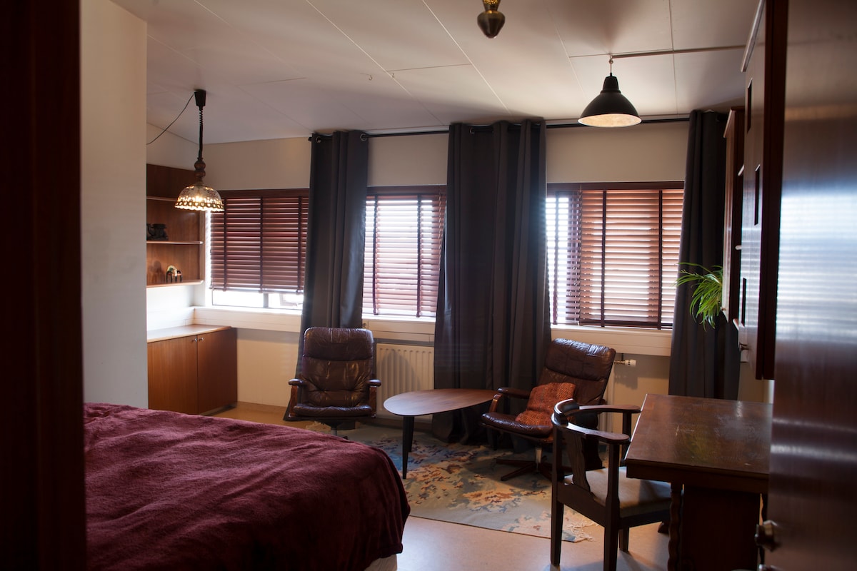 A very nice room with two beds and a private bathroom with a shower. Located as close to the Airport as possible, approximately 2.4 km walking distance from Keflavik Airport. Very close to the grocery store, ice cream shop, bakery and about 1 km from the center of Keflavík.