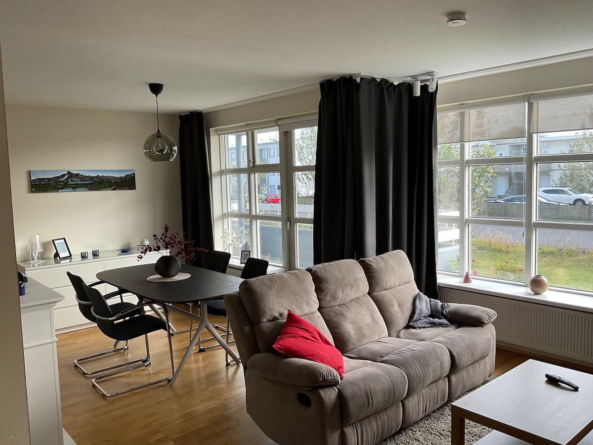The whole group will enjoy easy access to everything from this centrally located place.private entrance to the apartment,2mins walk to downtown keflavik with easy access to stores,bank.gas station 5mins drive from the keflavik international airport,very good for families or group of friends thanks