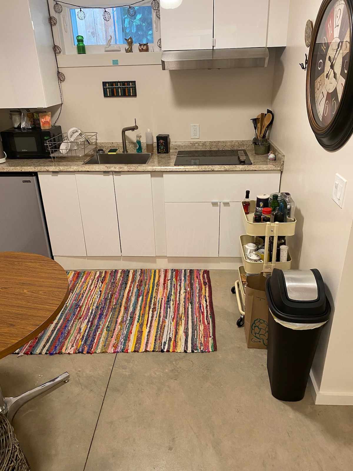 A cozy, pet-friendly basement ADU with full kitchen and big renovated bathroom.