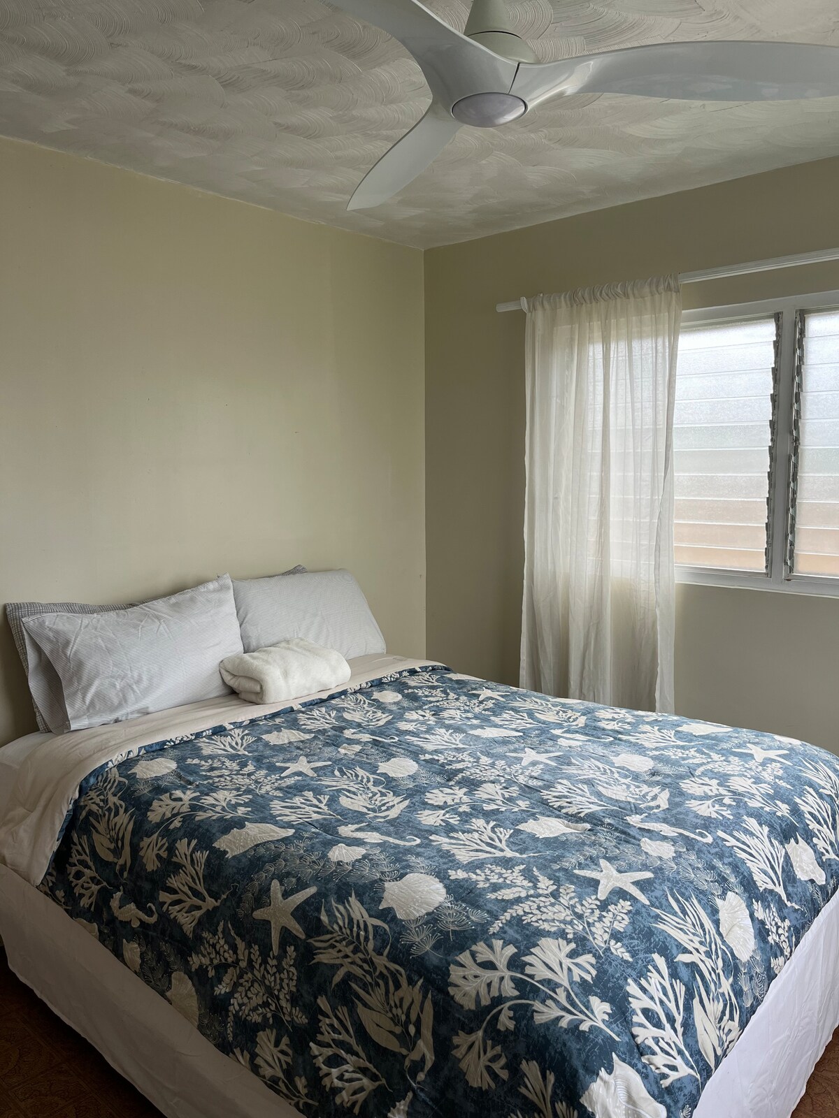 Bedroom 4: Queen size bed, Shared access to hallway bathroom with Bedroom 2, Shower/bathtub combo, Safe, Ceiling fan (Sleeps 2)