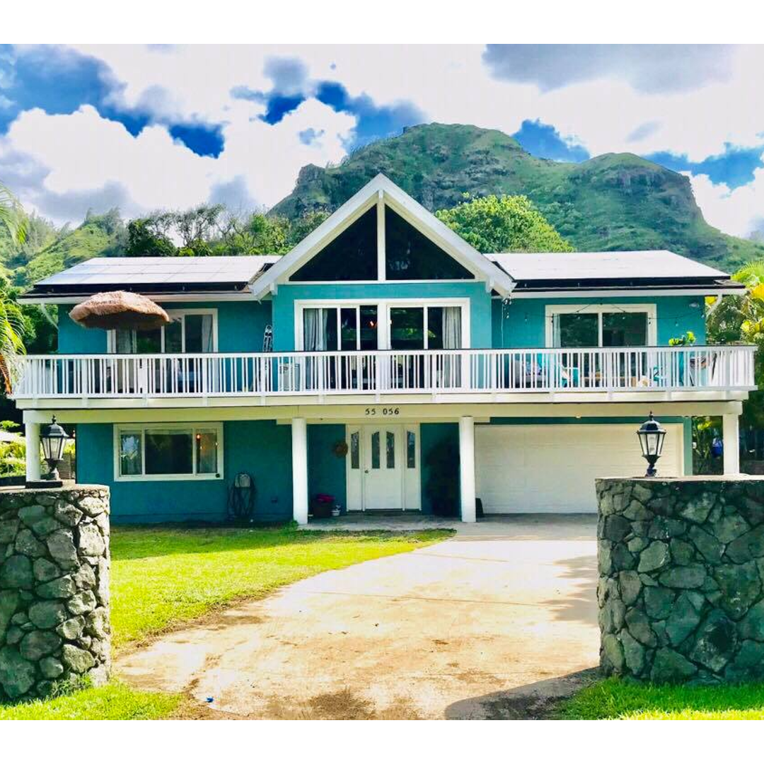 Hukilau Beach and the blue waters of the Pacific Ocean on one side and the Ko'olau mountains on the other, Hale Lani lives up to its name as the “House of Heaven.” The perfect choice if you’re traveling with a large family or a group of friends, this home is one of only two on the entire beach that is licensed for vacation rental, NCU 90/TVU -0043. Sitting on one of the biggest beachfront properties on the bay, the 2/3 acre and 4200 square foot estate feels completely private from the surrounding properties. Recently rebuilt and renovated, the home comfortably accommodates 14 guests in six bedrooms. All new furniture, beds, appliances, fixtures, A/C units, and linens, this home is as beautiful and fresh as it is relaxing. The kitchen is stocked for the gourmet chef in the group, with over 20 feet of counter space and views looking straight out to the water. The sunrise should not be missed from the balcony upstairs and the beautiful new gazebo that sits overlooking the beach will keep you relaxed and content for hours.