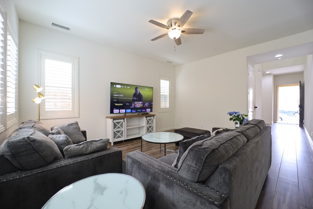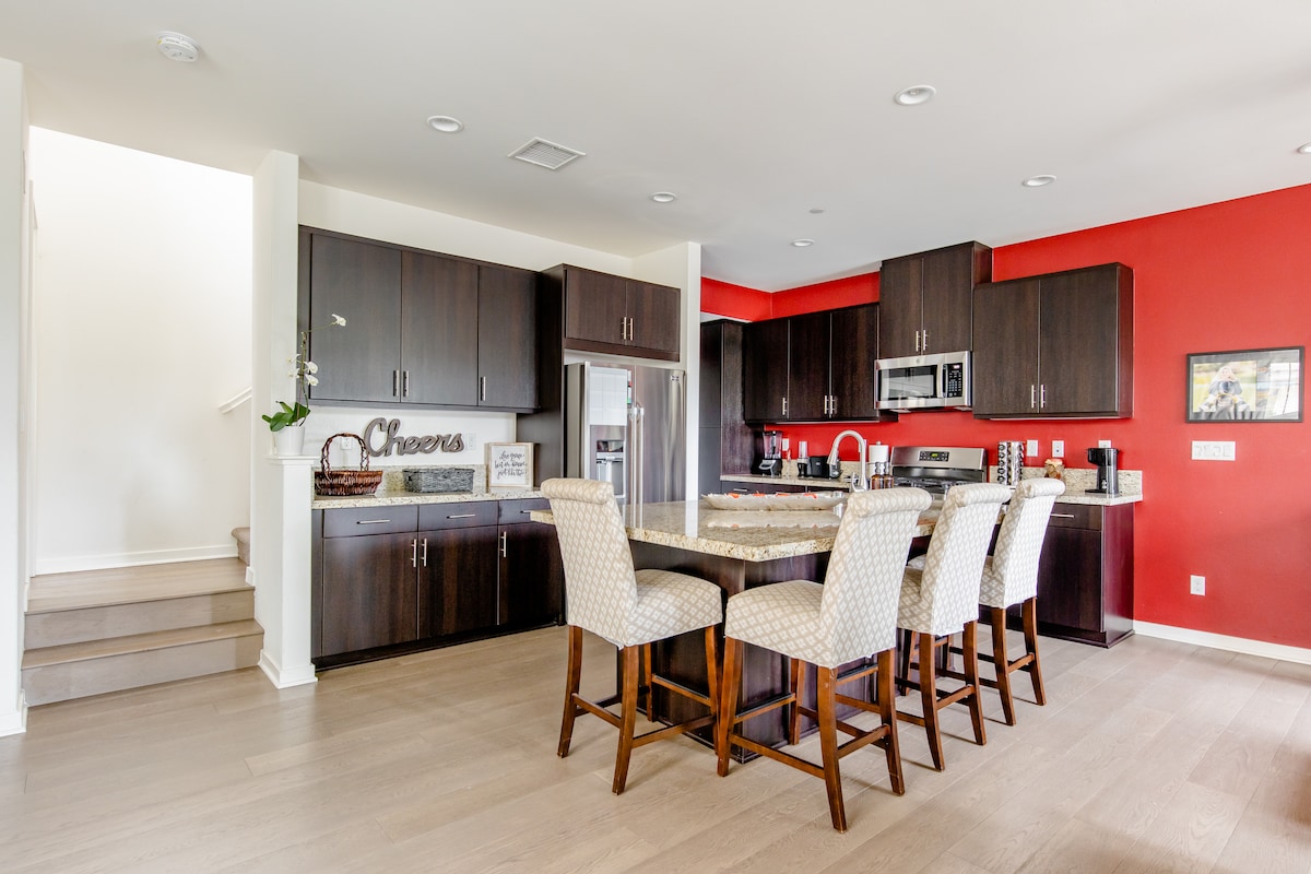 Our stylish 3 bedroom home will be your home away from home. Can accommodate 6 guests. We've spared nothing to create a clean, comfortable, and open floor plan. The interior of the house is all new. All guest rooms enjoy King size beds for your ultimate sleeping comfort. Bathrooms are stylish with dual shower heads. All rooms have 55" TV's equipped with ROKU TV and all TV apps you desire. Our location is central to all Orange county attractions (Disney, beaches, etc..) 100's of wonderful restaurants are within a 2 minute drive from the town-home. Two car garage in included. Self Check-In. You will be happy here. :)