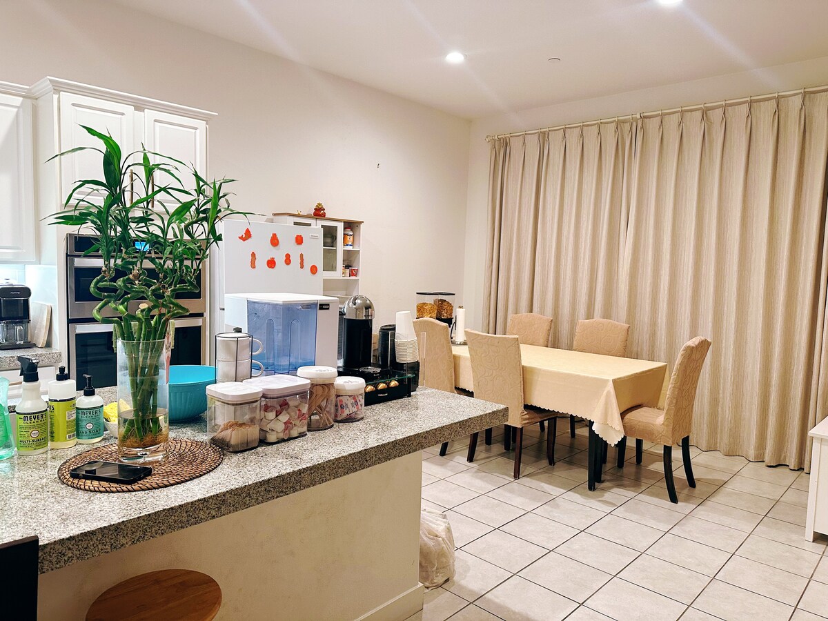 Welcome to our spacious and inviting retreat, nestled in a picturesque neighborhood just 15 minutes from the sun-kissed shores of the beach and 20 minutes from the enchanting world of Disneyland. The room offers a comfortable and stylish sanctuary for your stay, with thoughtful touches that make it feel like a home away from home.
