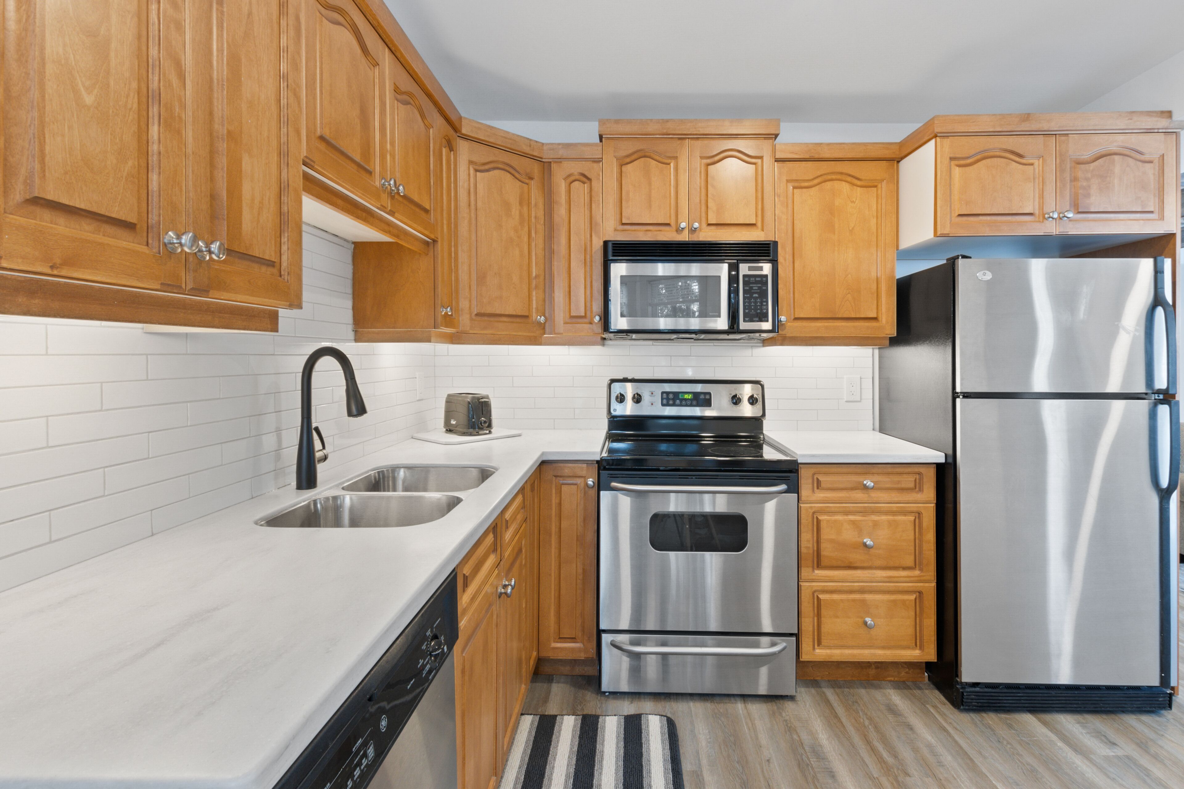 While you're here, you can enjoy all the comforts of home and more, including a full-sized refrigerator/freezer and an oven, as well as a stovetop and a dishwasher. Other amenities include towels, an electric kettle, kitchenware and utensils, and a toaster.