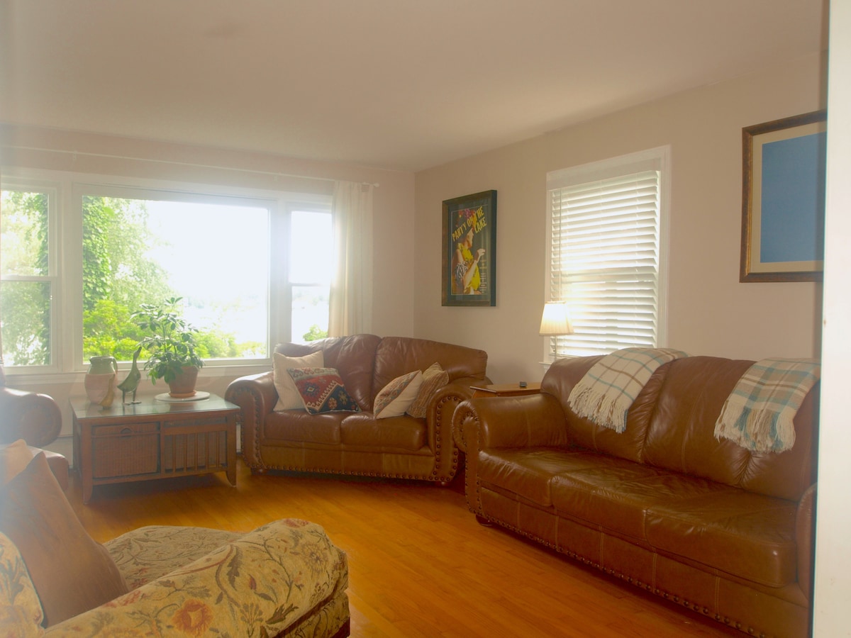 The whole group will be comfortable in this spacious and unique space. This lakefront house is in a friendly neighborhood with an easy access to RT 2 and is just minutes away from the village center located in the center of town. Plenty of off street parking