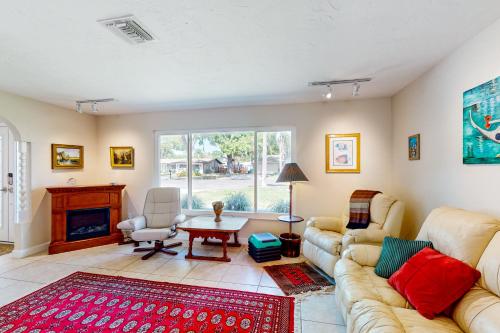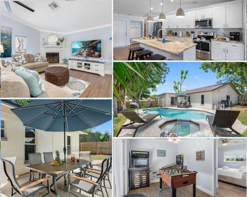 Heated Pool, Pet friendly, Dunedin Beach Gem offers accommodations in Palm Harbor, 9 miles from Pier 60 and 19 miles from Raymond James Stadium. This vacation home features air-conditioned accommodations with a patio and free Wifi. Outdoor seating is also available at the vacation home. Heated Pool, Pet friendly, Dunedin Beach Gem features 3 bedrooms, a fully equipped kitchen with a dishwasher and an oven, a washing machine, and 2 bathrooms with a hair dryer. Towels and bed linen are available in the vacation home. The accommodation has a fireplace. Guests can relax in the garden at the property. John's Pass is 22 miles from the accommodation, while John's Pass Village and Boardwalk is 22 miles from the property. Tampa International Airport is 17 miles away.