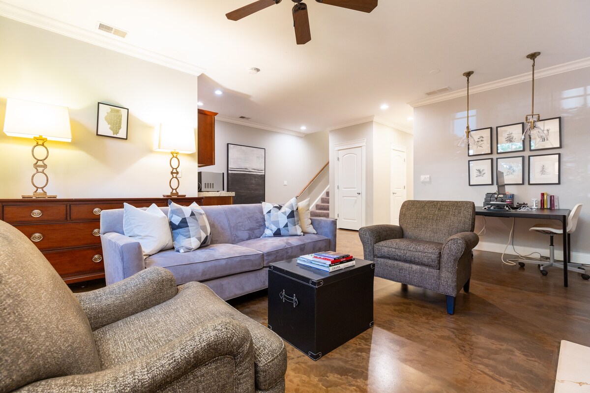 My home has three bedrooms and an office. I have two rooms that I host guests in. They are both downstairs and have access to all the common areas. All of the rooms have their own bathroom, this room listing has its bathroom located on the main level it's still close but not next to your room.