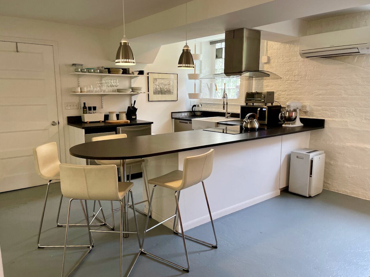 The property is above a restaurant and owners apartment. Its a four bedroom two bath unit (you will be renting just the one bedroom). Being made available for longer rental periods while licensing for the full bed and breakfast is happening.