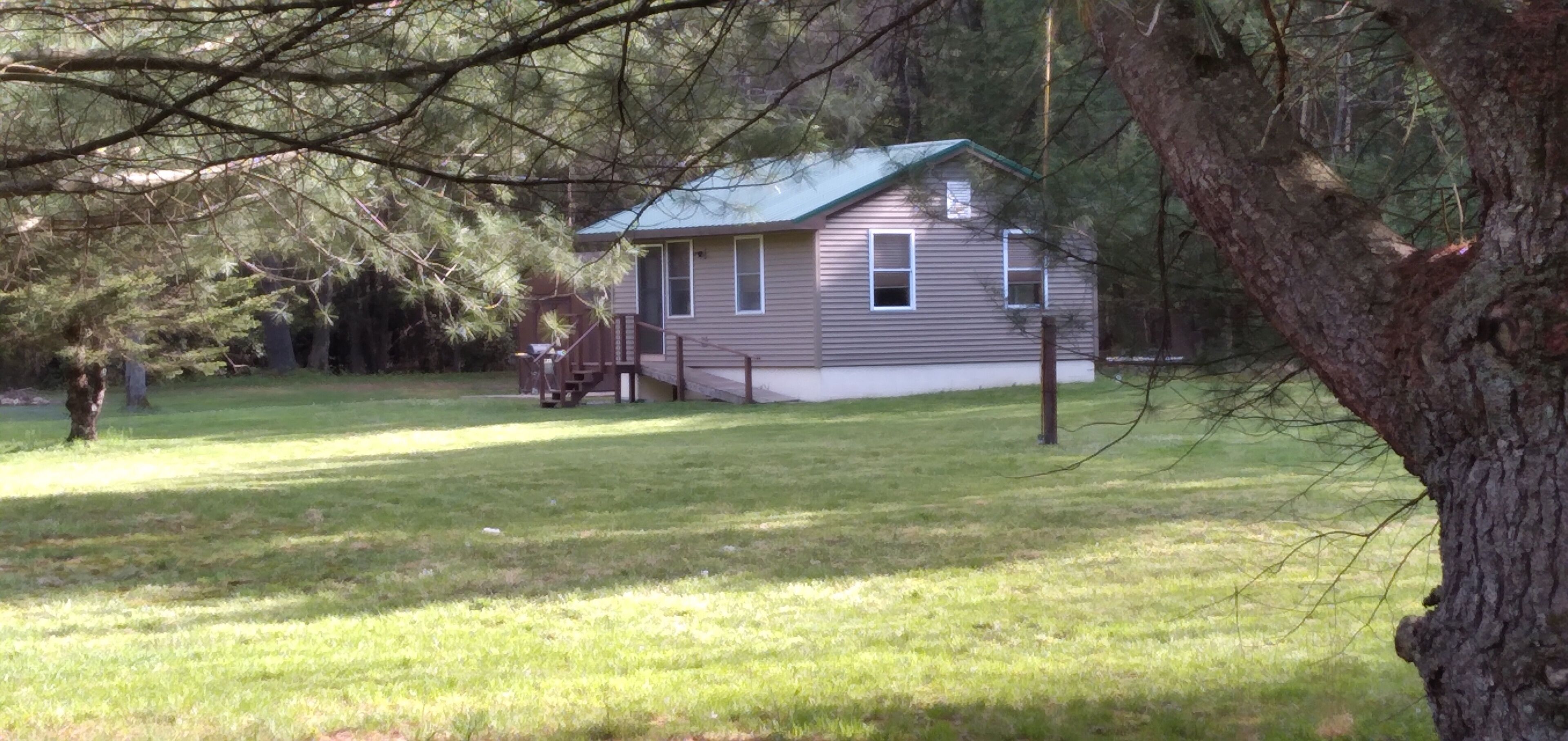 Welcome to the Creekside Cabin @ The Bear's Den! This magnificent 5-bedroom, 3-bath cabin is situated on 30 nontimbered acres in the PA Wilds. The living room and kitchen have gorgeous mahogany hardwood flooring that flows into the 5 bedrooms. Two of the bedrooms have access to their own deck. This cabin is equipped with central AC and hot water baseboard heat.