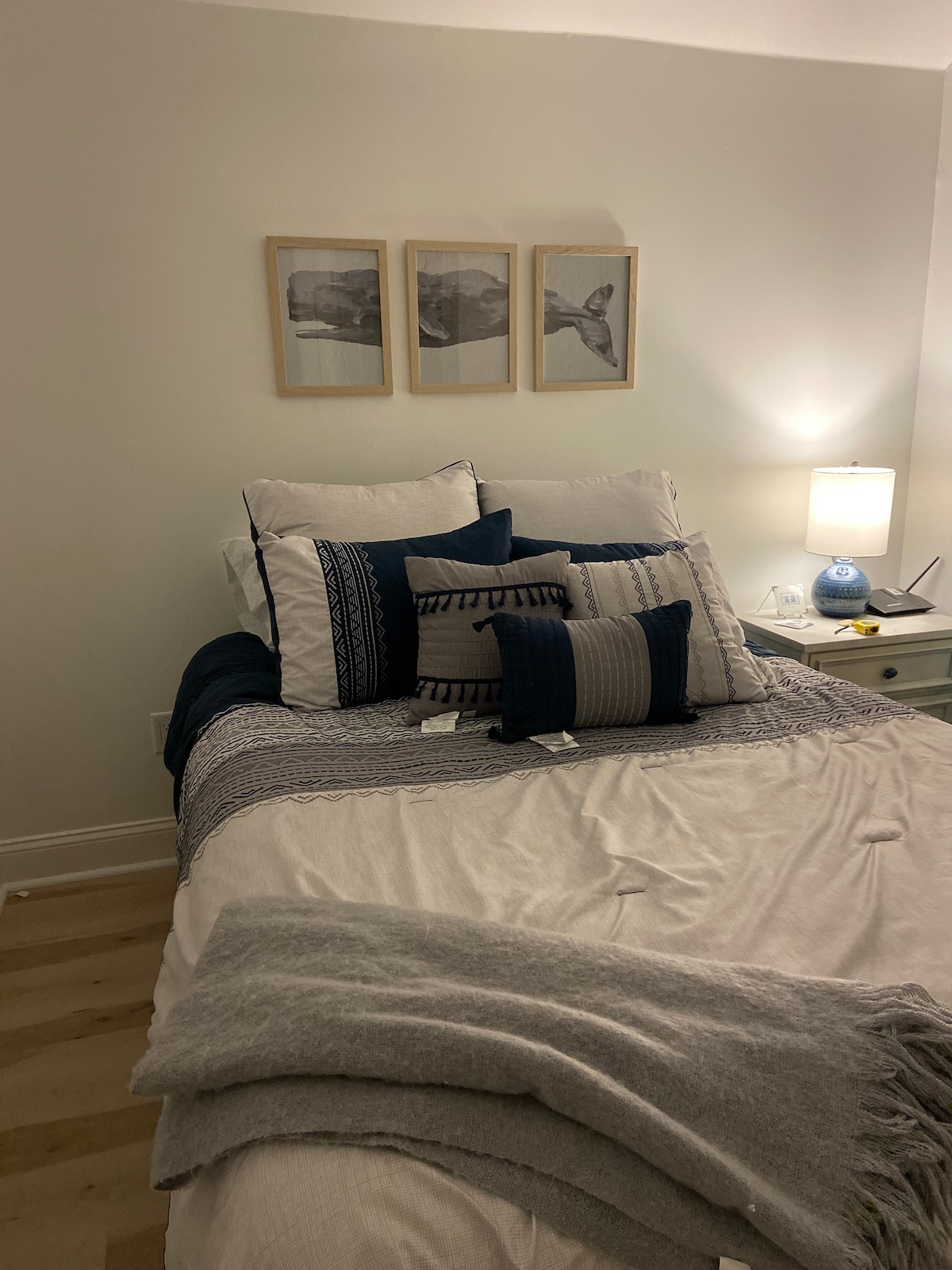 - "We had a great stay! The adjustable beds were a definite plus. The house is super cute and comfortable. We enjoyed the lake view very much, watching all the ducks was very peaceful. And the development was super quiet. Great communications as far as directions, checking in & out, where to leave the trash, etc. There were just a few small details that could use improvement. A good frying pan would have been helpful, the ones that were provided needed serious cleaning. Luckily I was able to reach out to a friend who was staying with us and they were able to bring a pan from home. The inside of the stove needs cleaning. There were only 2 wash cloths for 4 people, no dishtowel, no extra trash bags and only 1 dishwasher detergent pod. (we did the dishes by hand) That being said, we would definitely stay here again, it wouldn't be enough to keep us from booking again, we would just make sure to bring more ammenities with us next time. My only real complaint, which is also an easy fix, is to make sure the shower floor is rinsed thoroughly after cleaning. Whatever was used left the shower floor super slippery. This could have caused a major injury instead of just a sore hip and knee. But again, the house is super cute, it has a great porch and comfortable beds. We would definitely stay here again. "